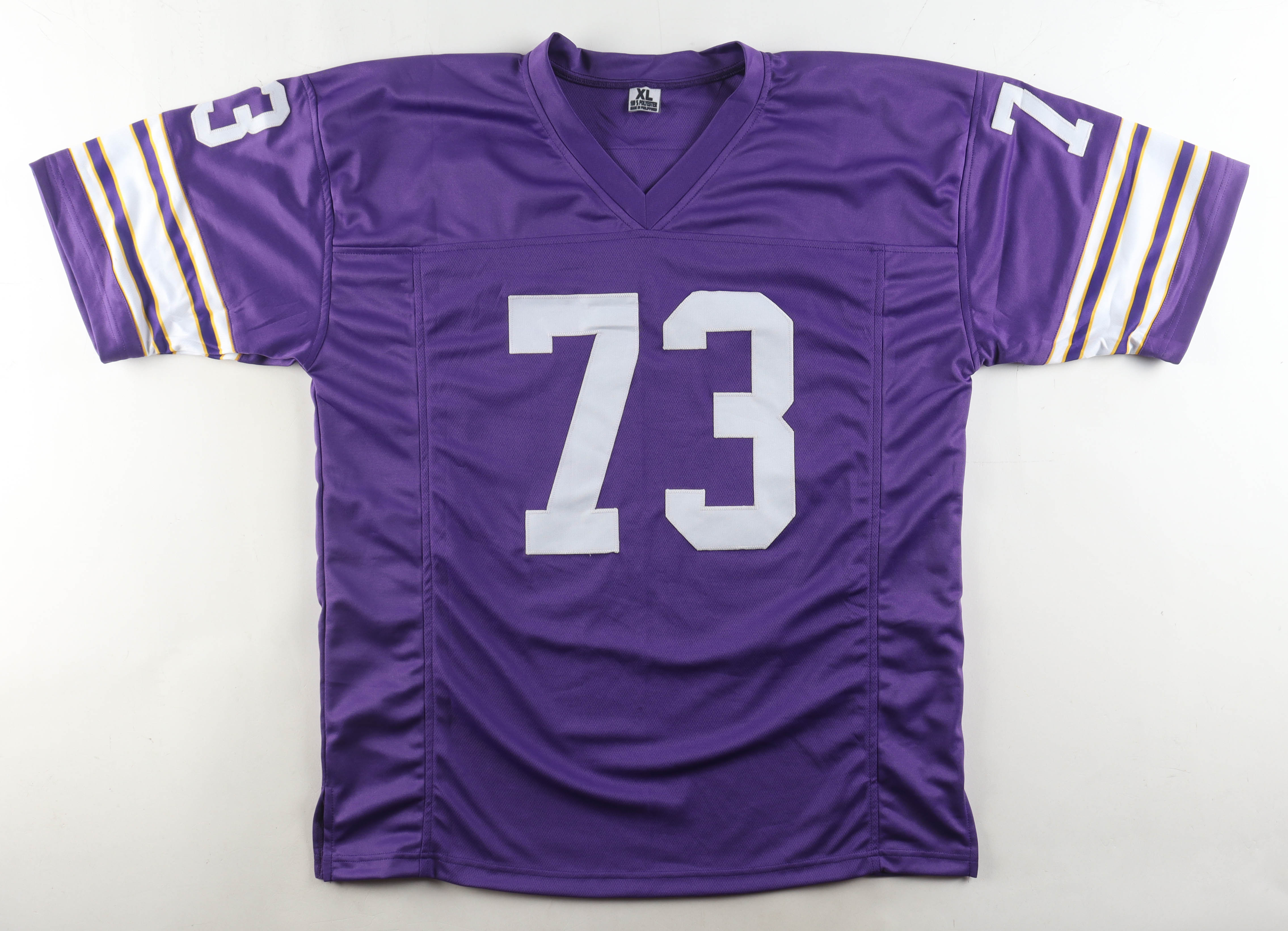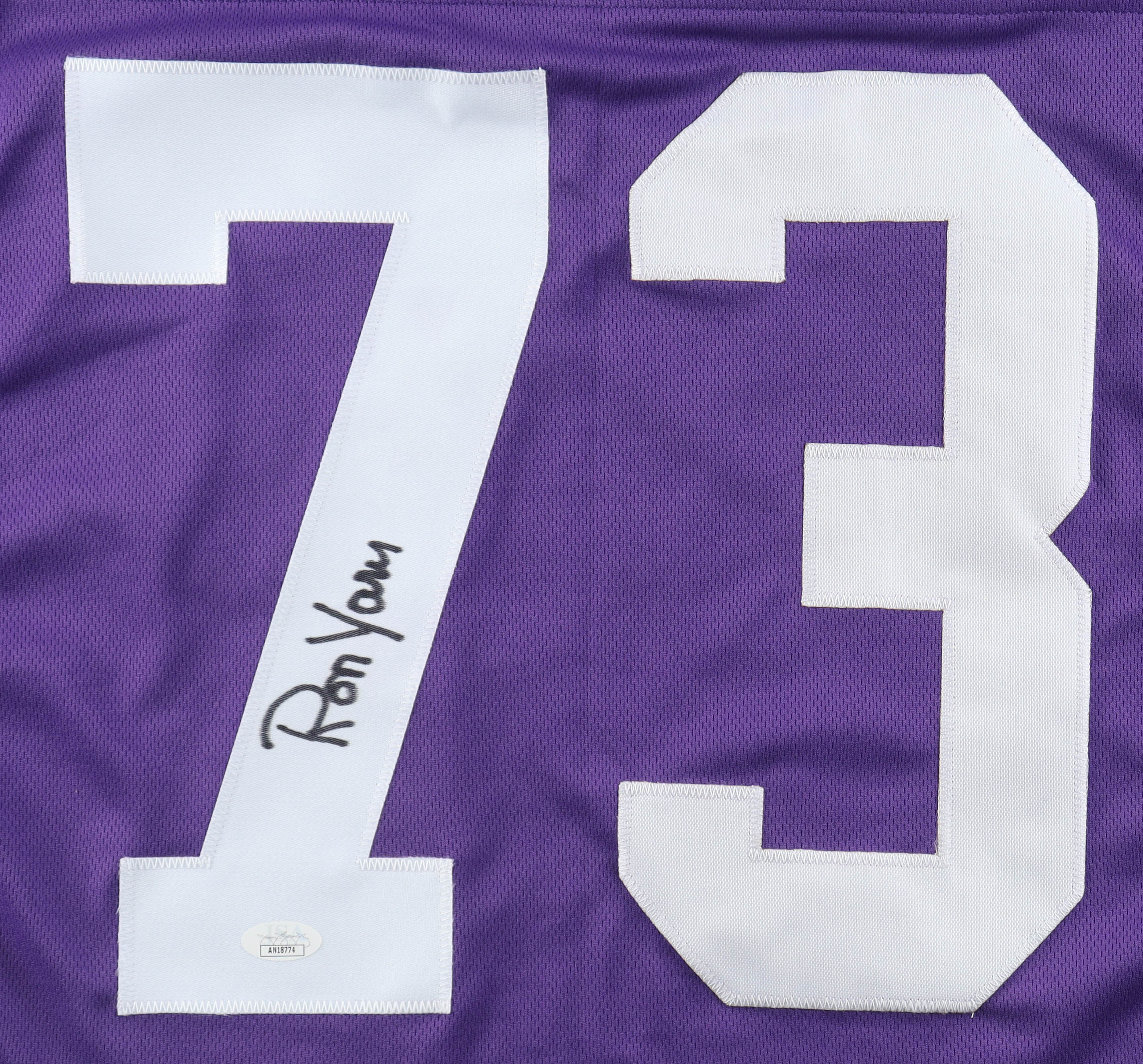 Custom jersey with everything sewn on, size XL. Hand-signed by Ron Yary.