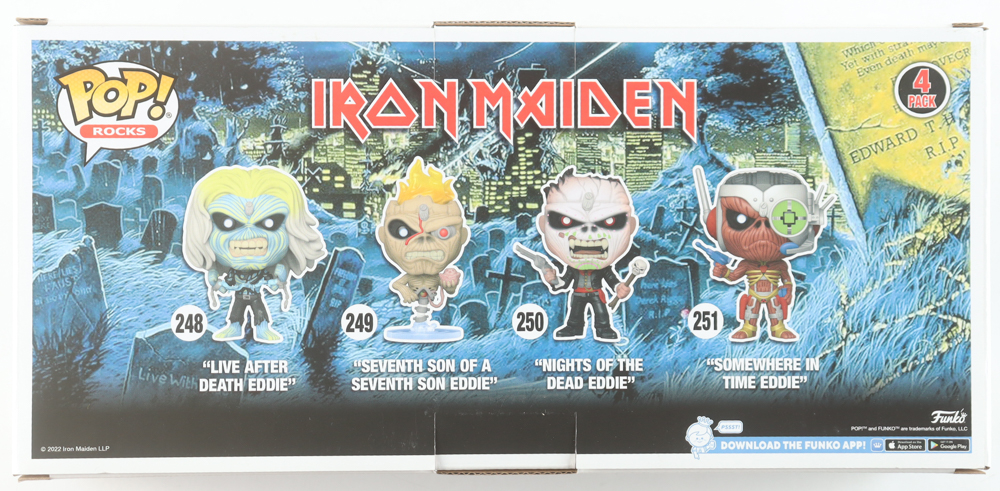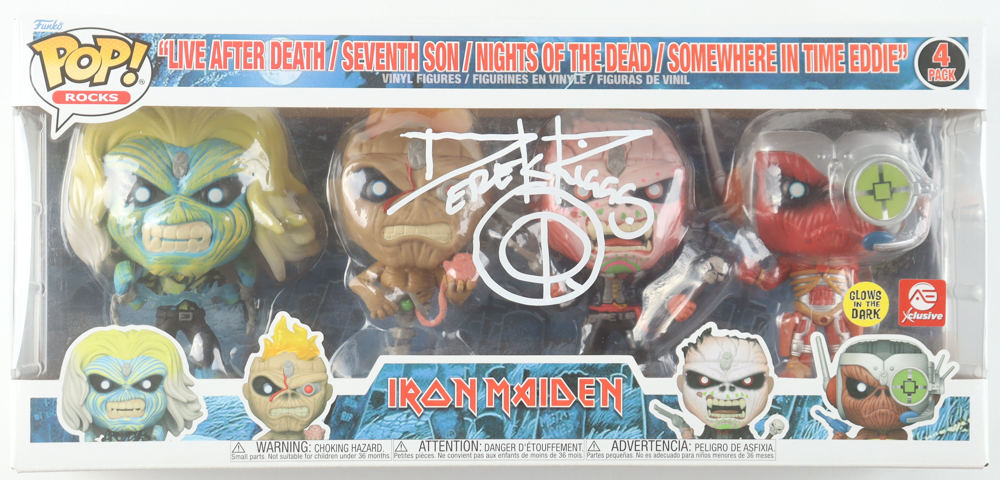 Derek Riggs Signed "Iron Maiden" (4) Pack Funko Pop! Vinyl Figures with Hand-Drawn Sketch (JSA)