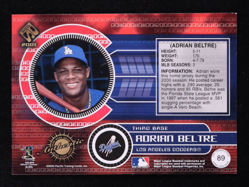 Adrian Beltre 2001 Private Stock Game Gear Jsy #89