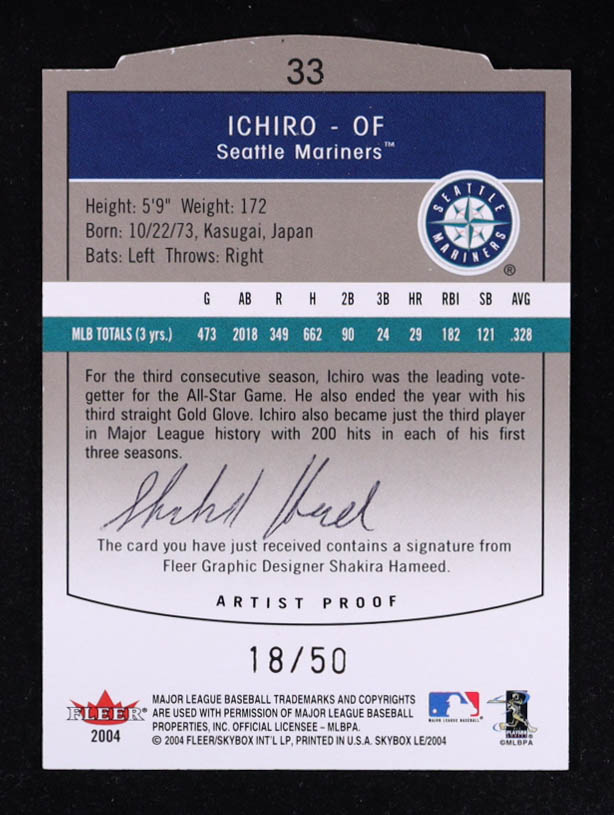 Ichiro Suzuki 2004 SkyBox LE Artist Proof #33 #18/50