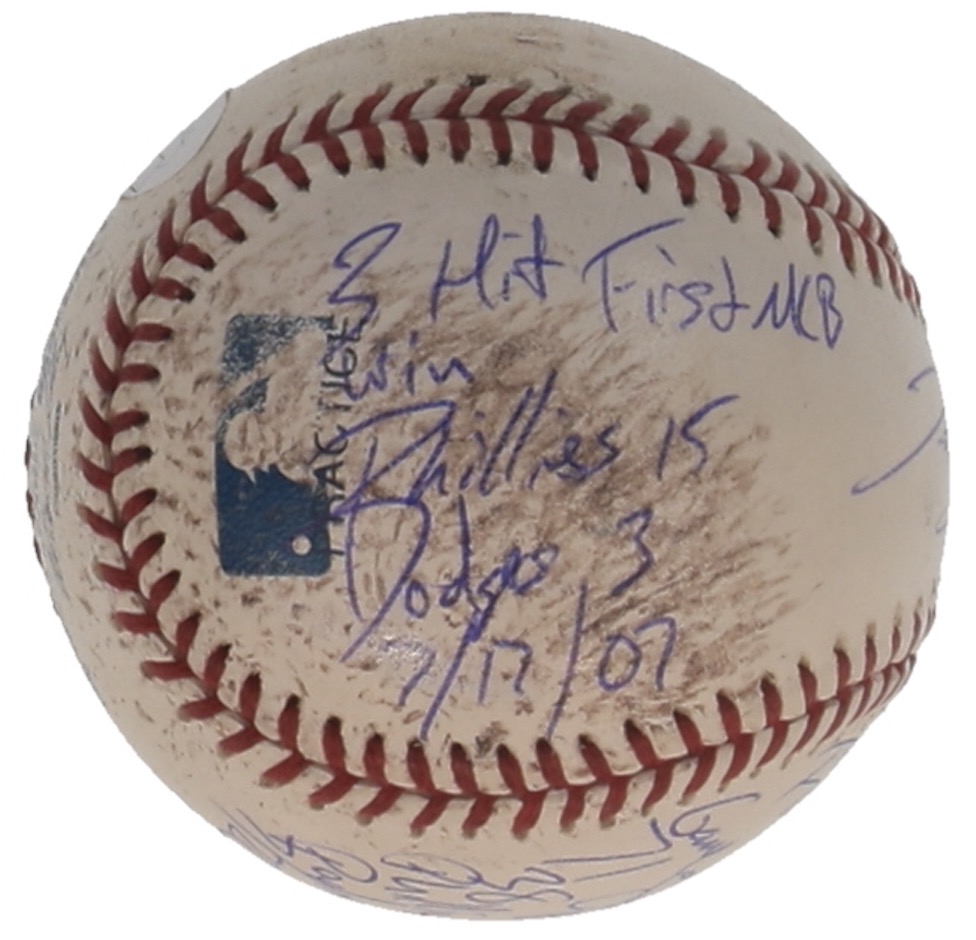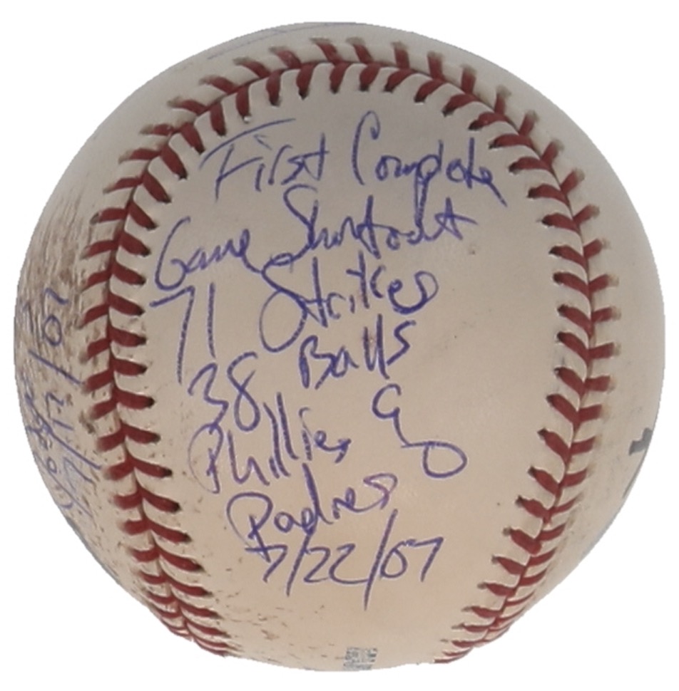 J.D. Durbin Signed OML Baseball with Career First 3-Hit & Complete Game Shutout Inscriptions (JSA)