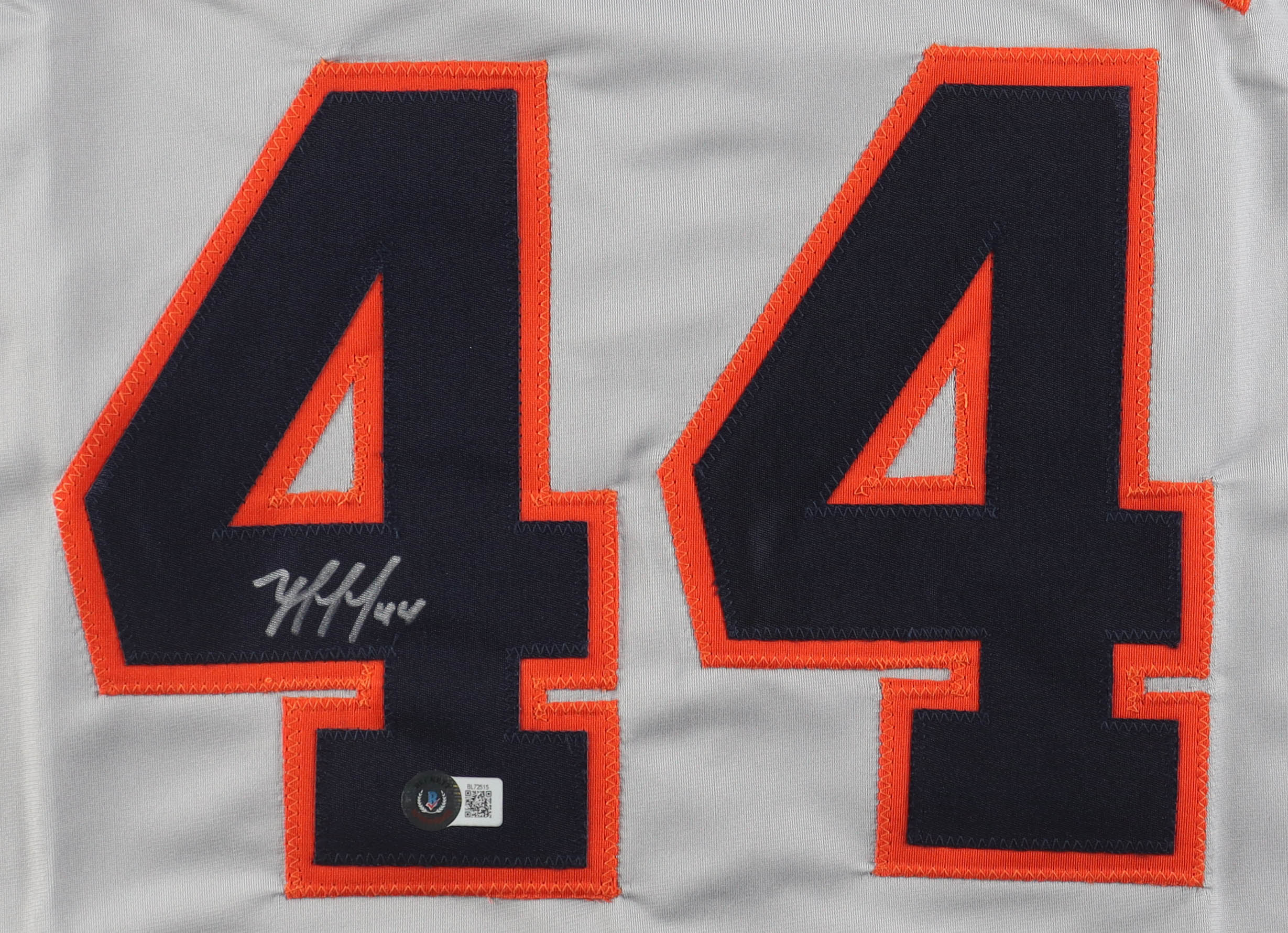 Custom jersey with everything sewn on, size XL. Hand-signed by Yordan Alvarez.