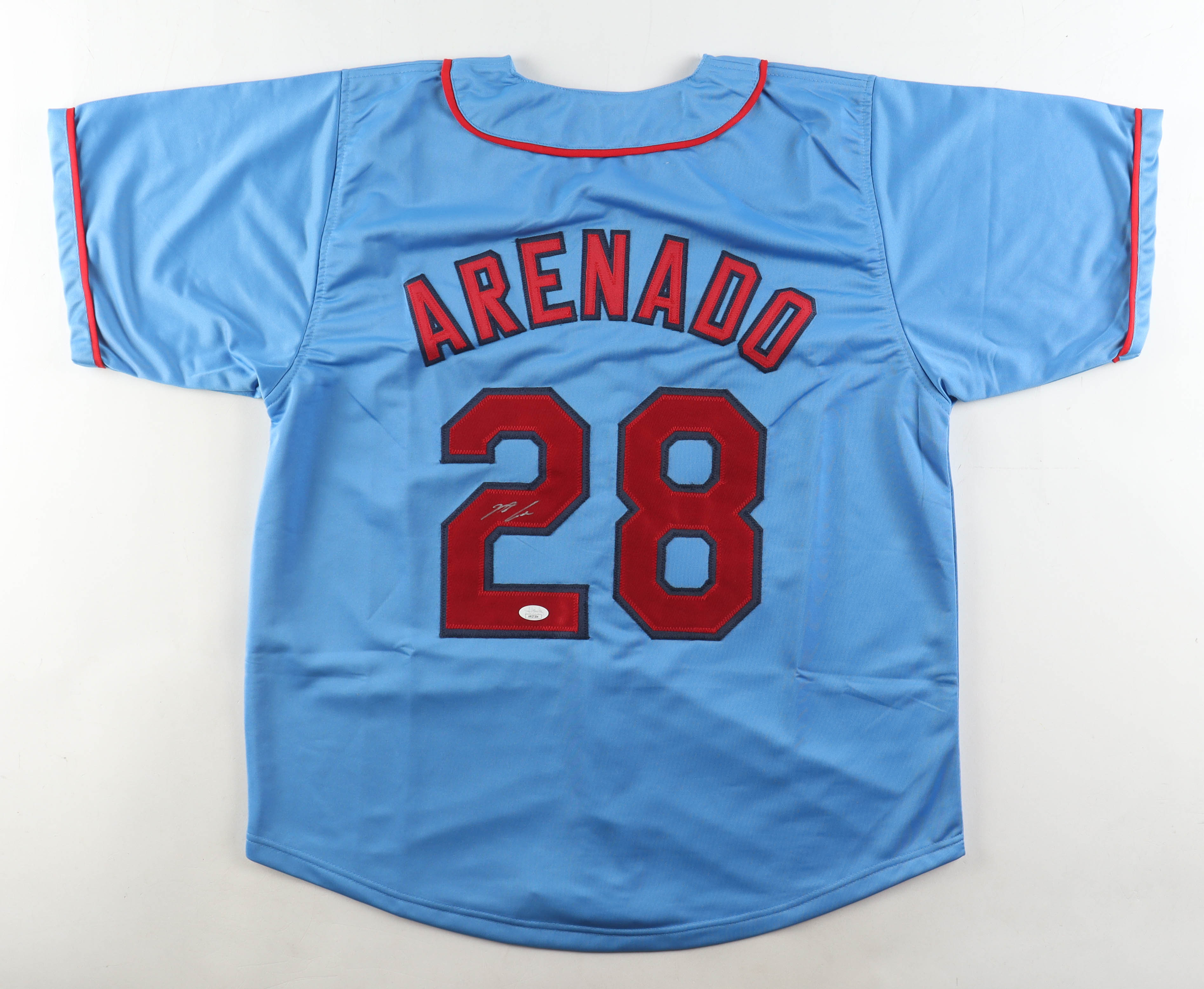 Custom jersey with everything sewn on, size XL. Hand-signed by Nolan Arenado.
