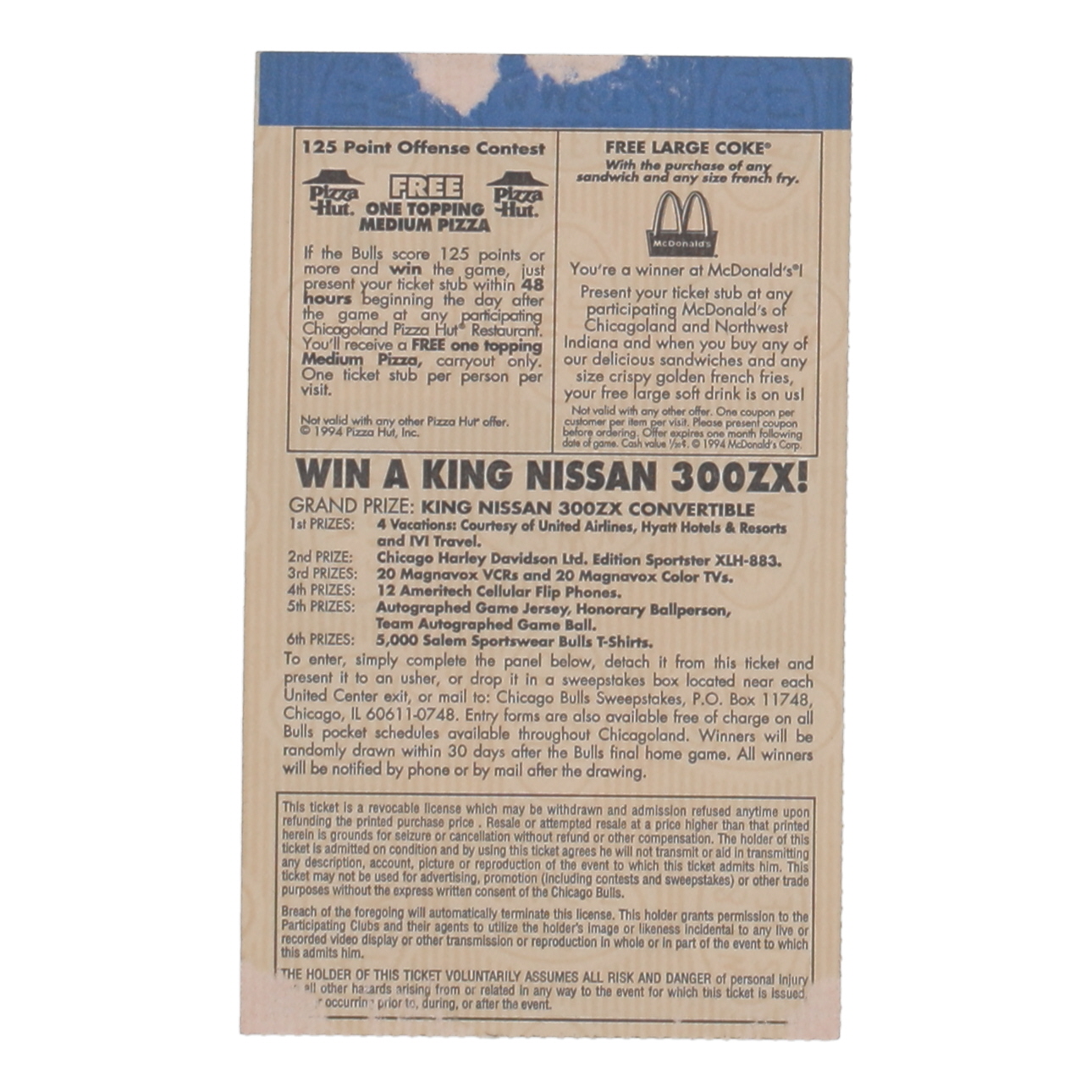 1995 Chicago Bulls NBA playoffs game A ticket. No date or opponent. Please note, item is unsigned.
