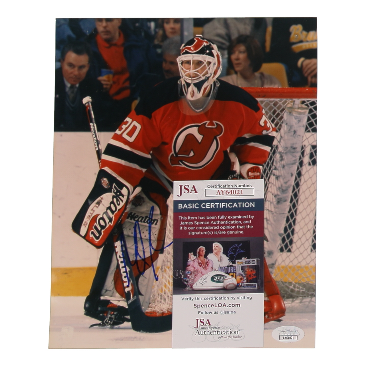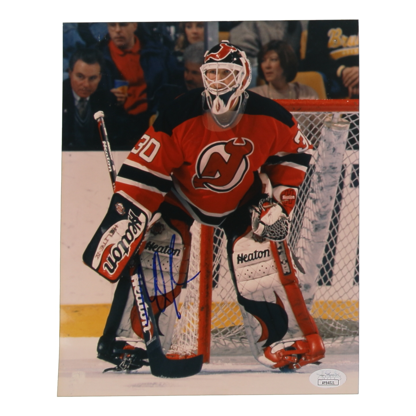 Photograph measures 8" x 10" in size. Hand-signed by Martin Brodeur (New Jersey Devils).