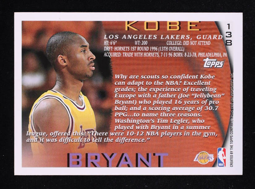 Kobe Bryant 1996-97 Topps #138 RC
