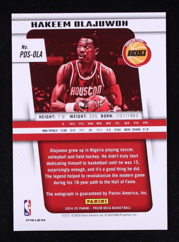 Hakeem Olajuwon 2024-25 Prizm Deca Signatures Prizms Mojo #90 #04/25