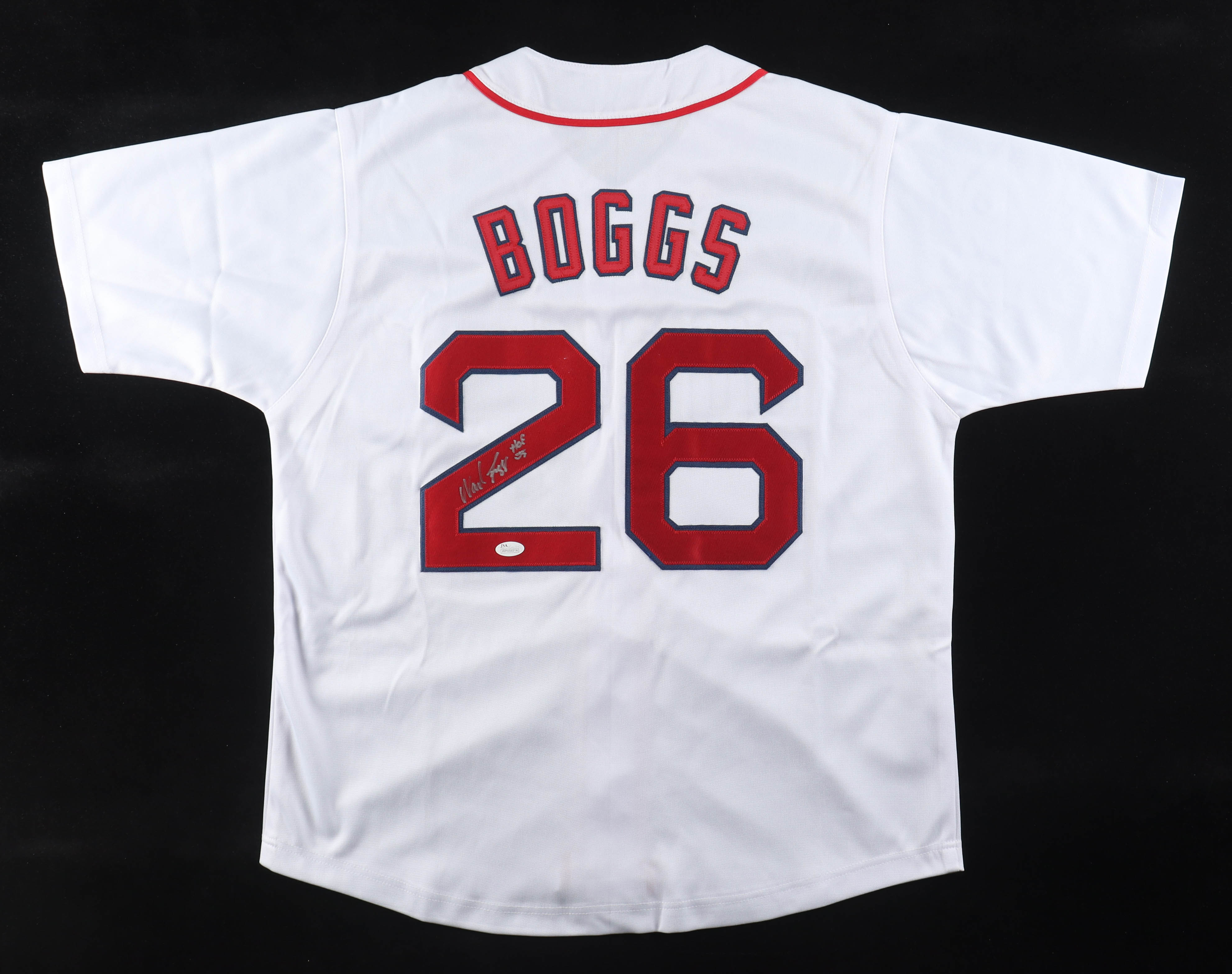 Custom jersey with everything sewn on, size XL. Hand-signed and inscribed by Wade Boggs (HOF).
