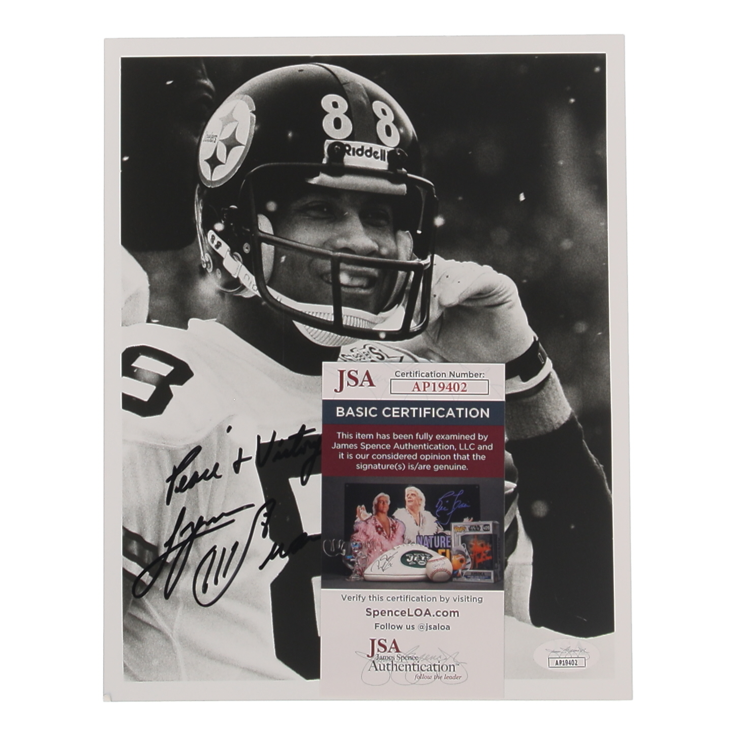 Lynn Swann Signed Steelers 8x10 Photo Inscribed "Peace + Victory!" (JSA)