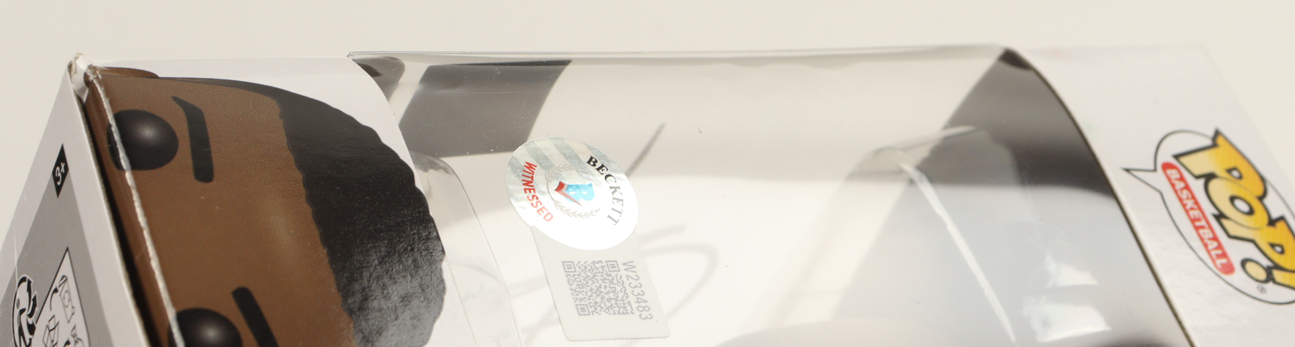 Funko Pop! vinyl figure that measures approximately 4" tall in size and has been hand-signed by Giannis Antetokounmpo (Milwaukee Bucks). Please note, packaging has been torn. Please see photos for more details.