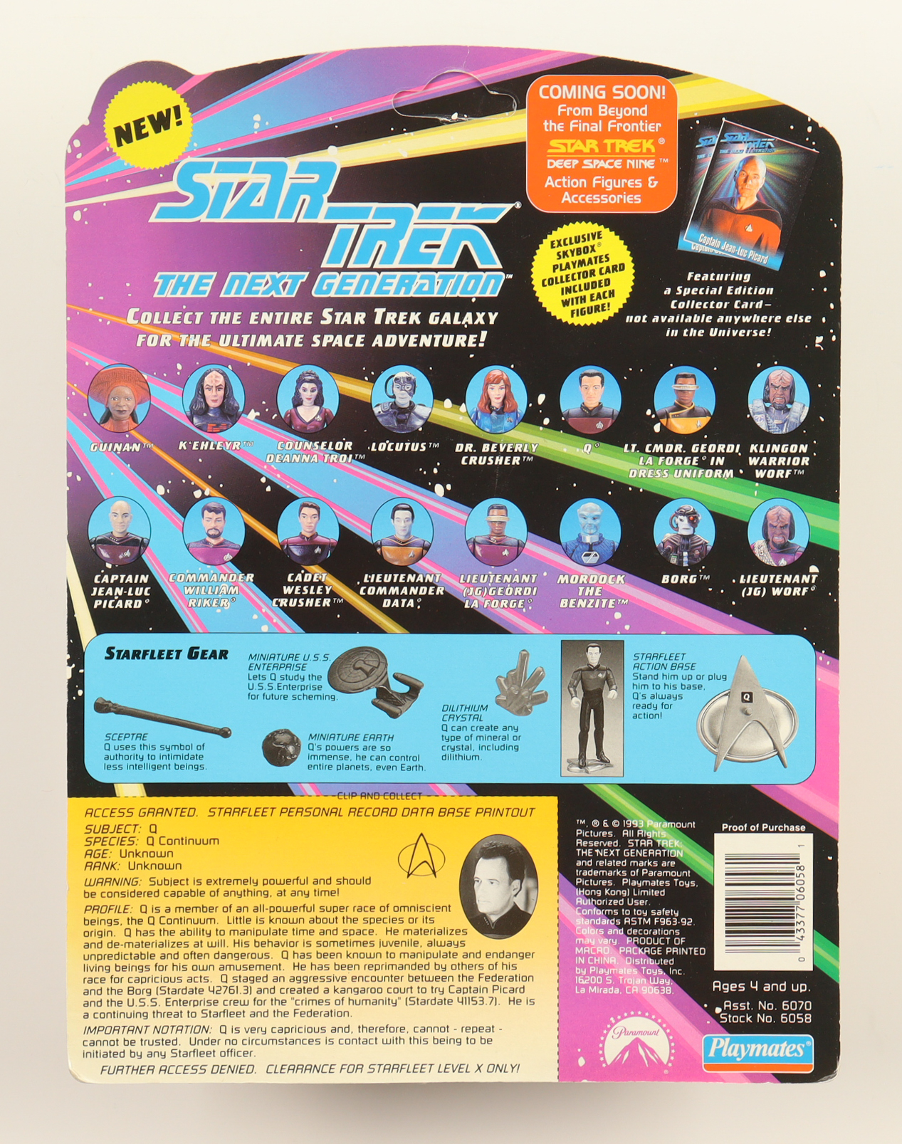 John De Lancie Signed "Star Trek: The Next Generation" 1993 Playmates Action Figure With Trading Card (JSA)