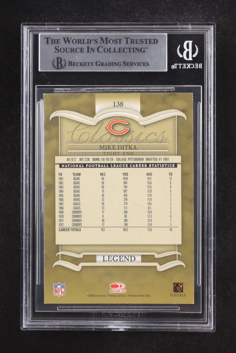 Mike Ditka Signed 2003 Donruss Classics #138 Inscribed "H.O.F. 88" (Beckett | Auto Grade BGS Authentic)