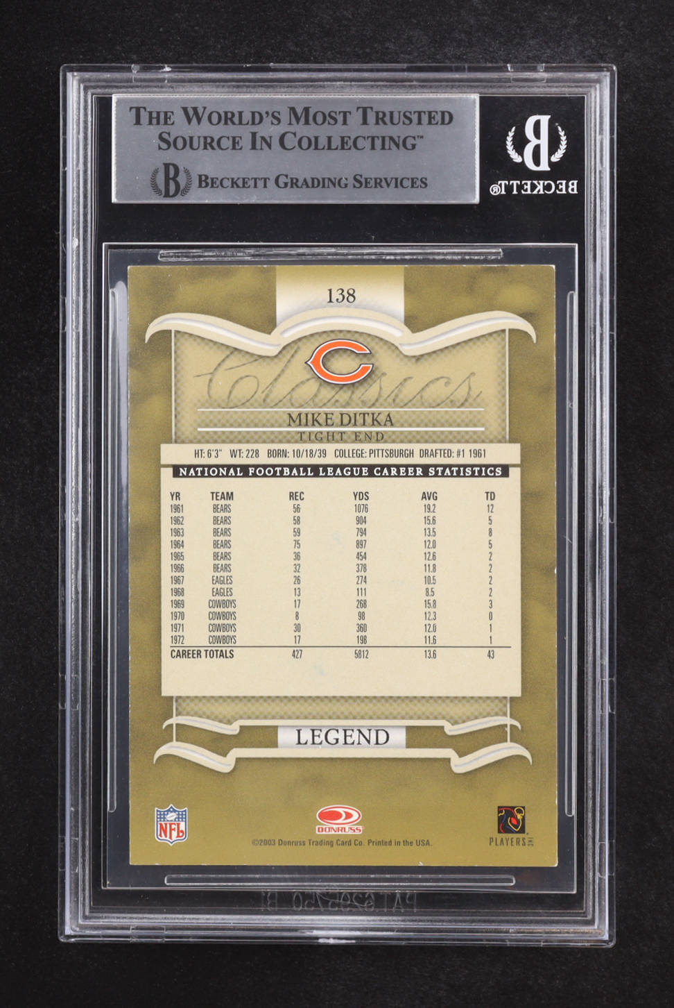 Mike Ditka Signed 2003 Donruss Classics #138 Inscribed "H.O.F. 88" (Beckett | Auto Grade BGS Authentic)