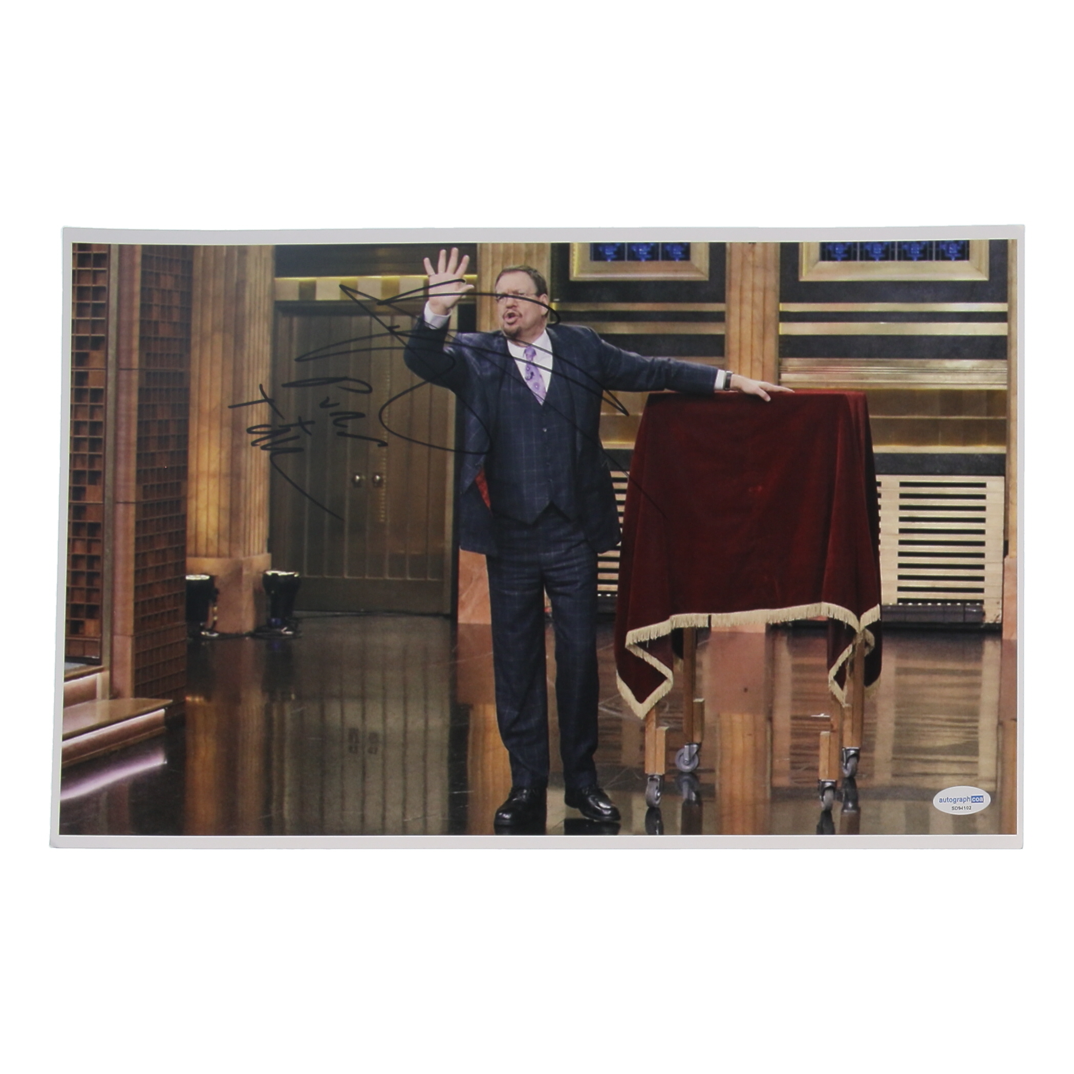 Photo measures 11" x 17" in size and has been hand-signed by Penn Jillette.