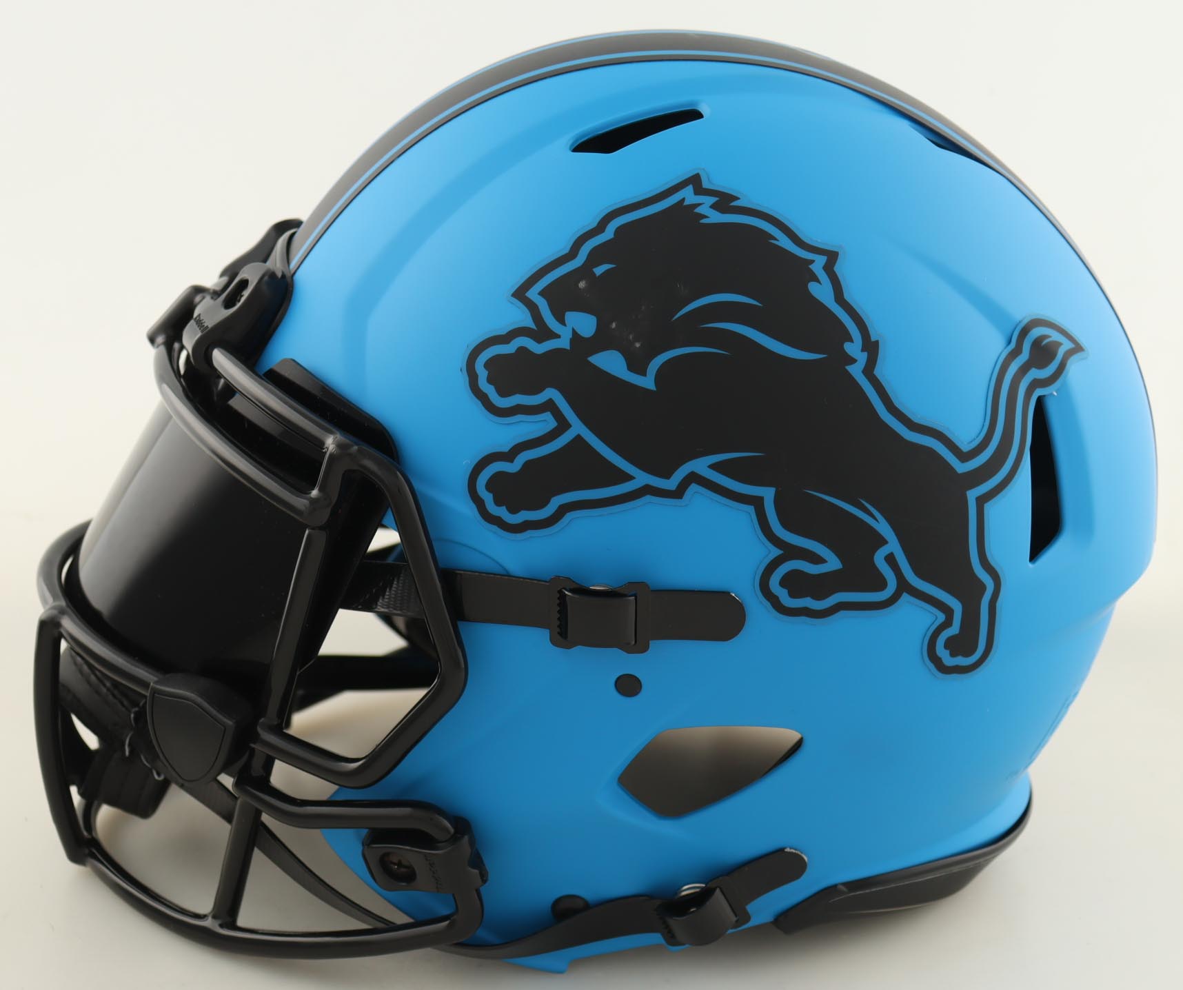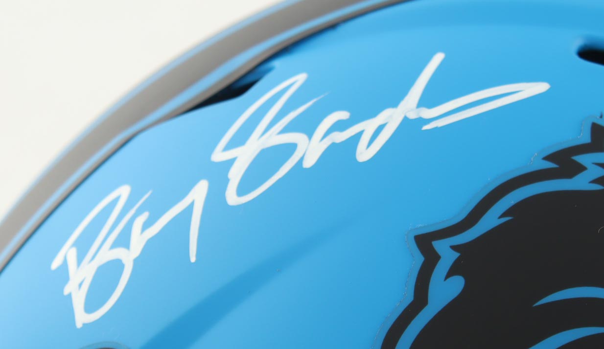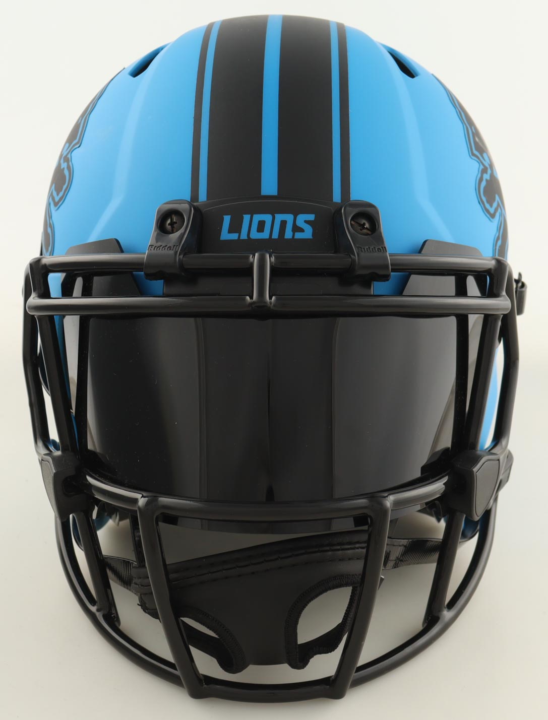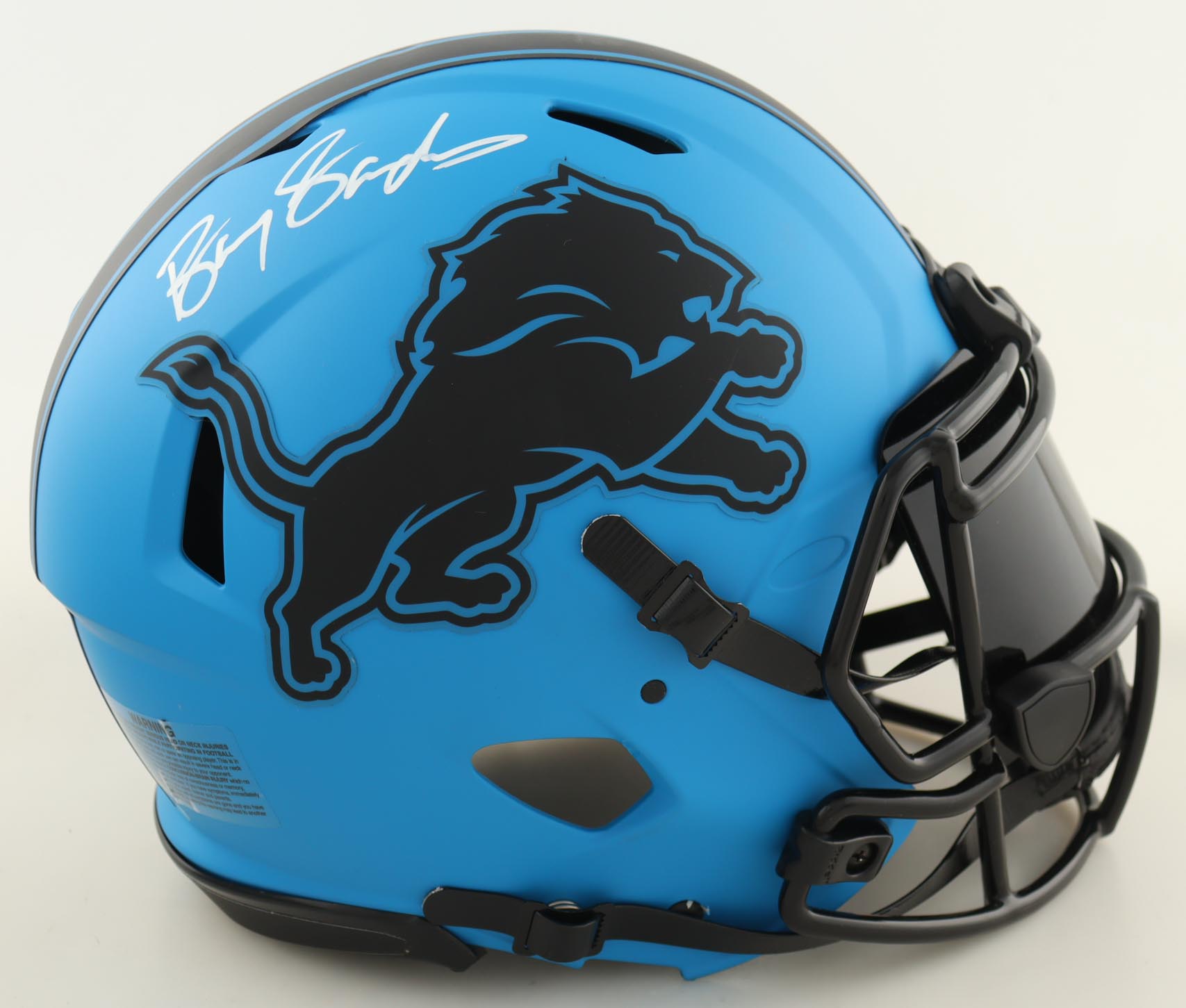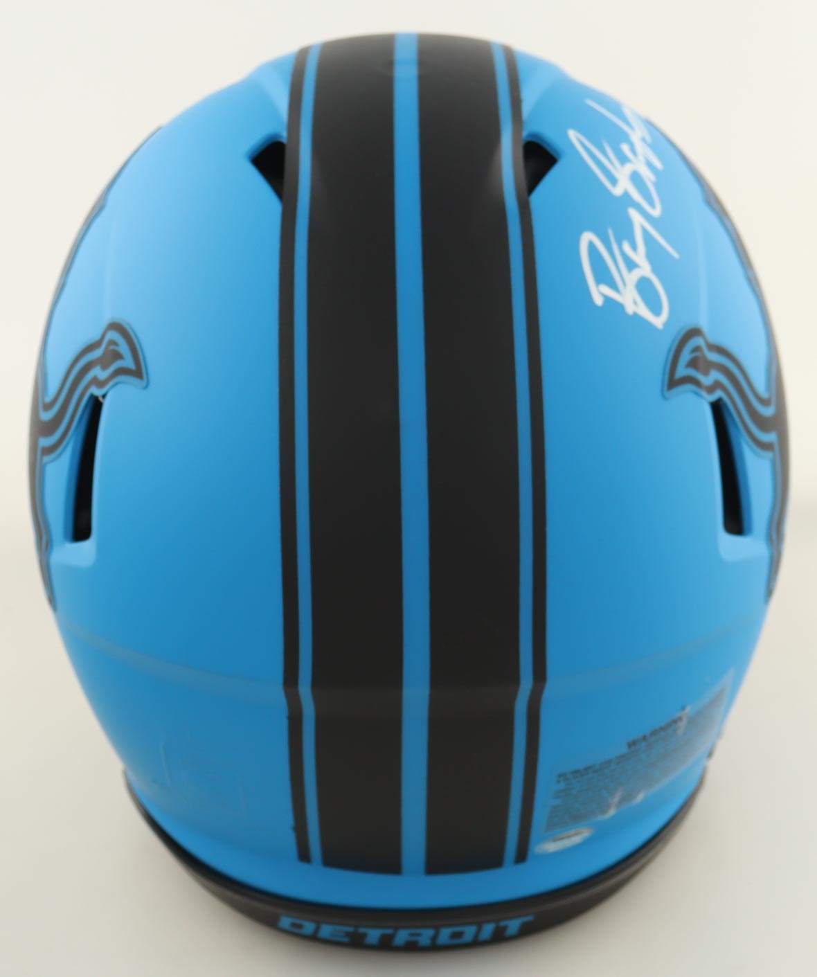 Riddell Detroit Lions Full-Size Authentic On Field Rave Alternate Speed Helmet has been hand-signed by Barry Sanders (HOF).
