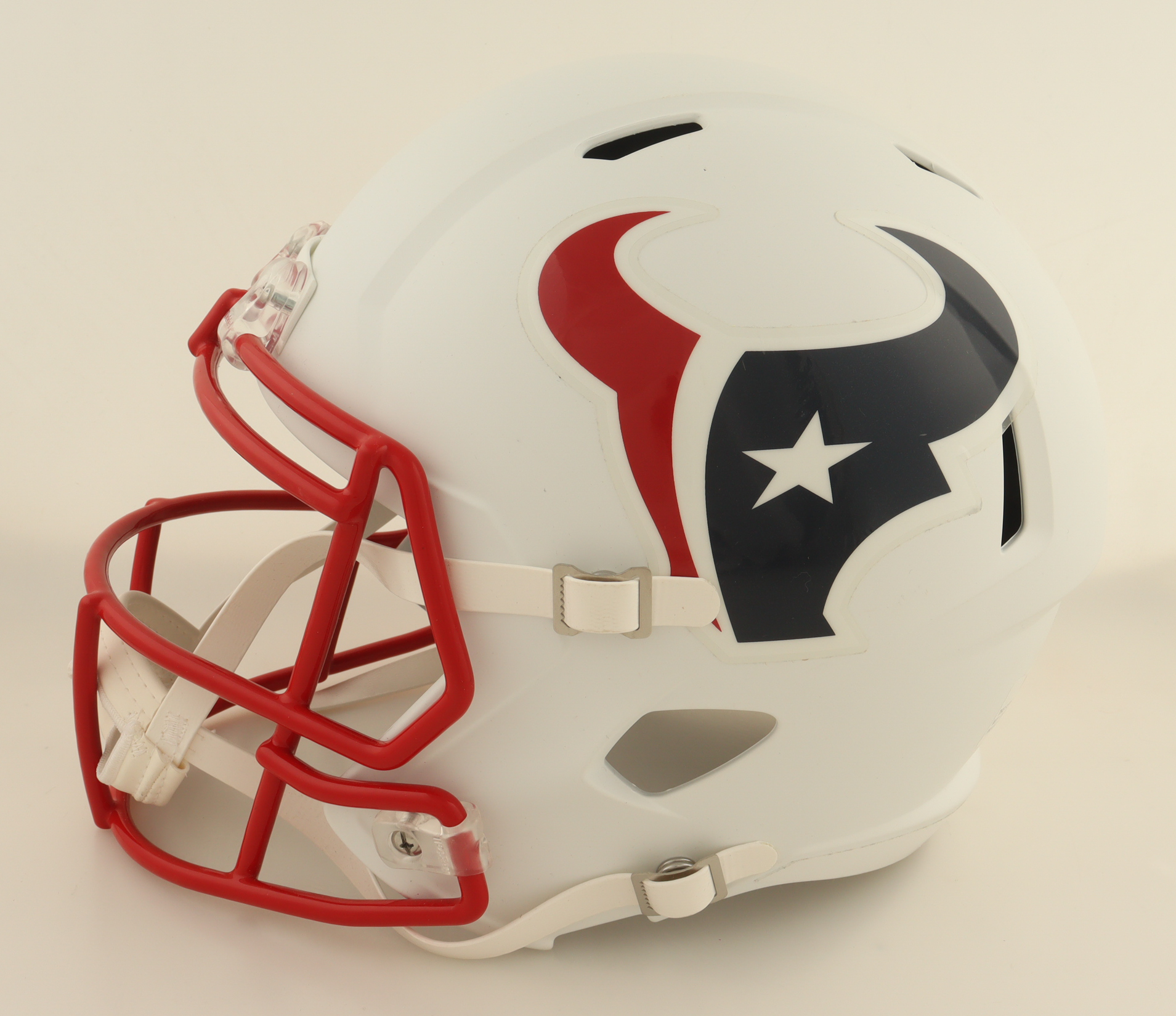 Riddell Houston Texans Full-Size Replica Speed Helmet has been hand-signed by DeShaun Watson. Please note that there is a stray mark on the top left side of the helmet.