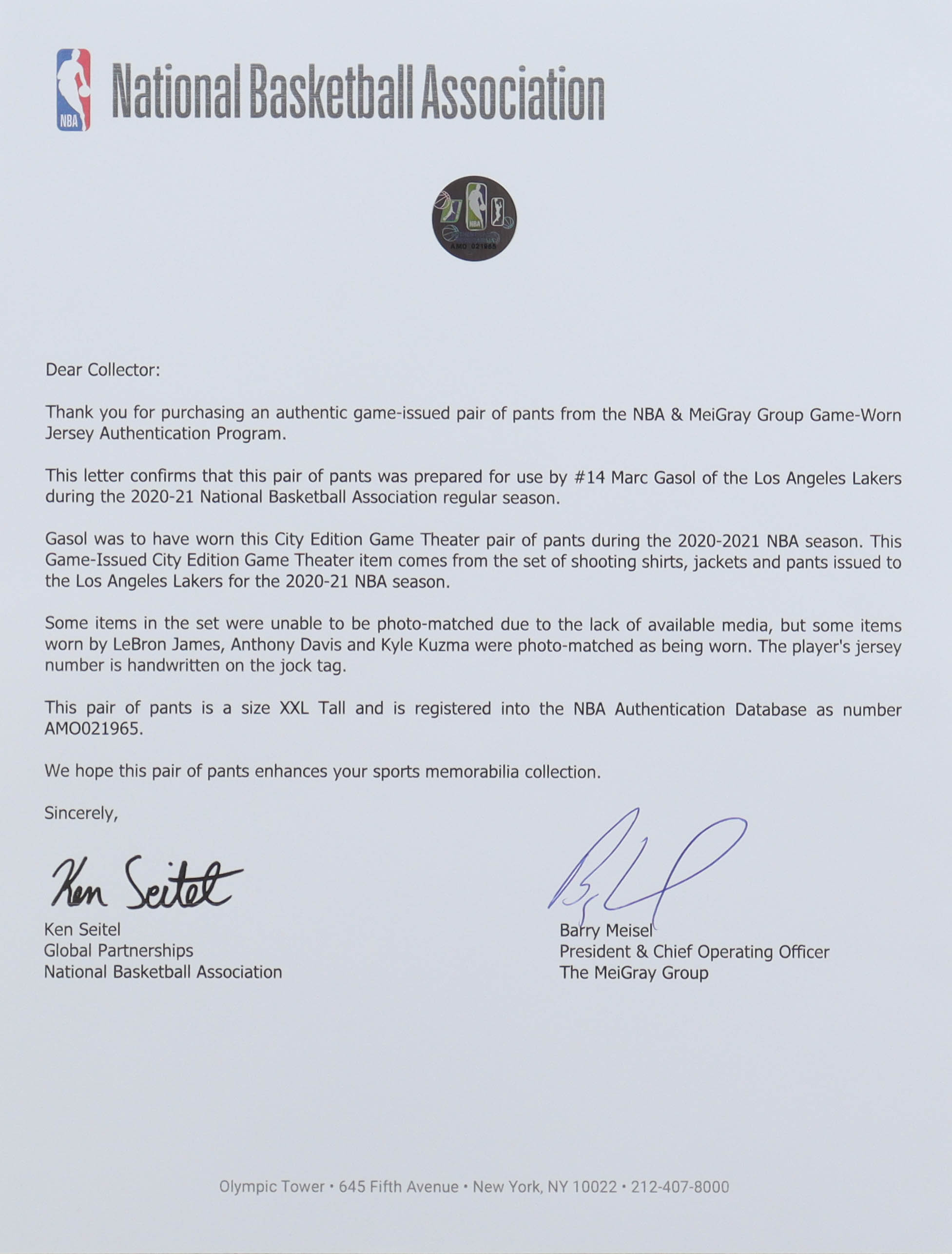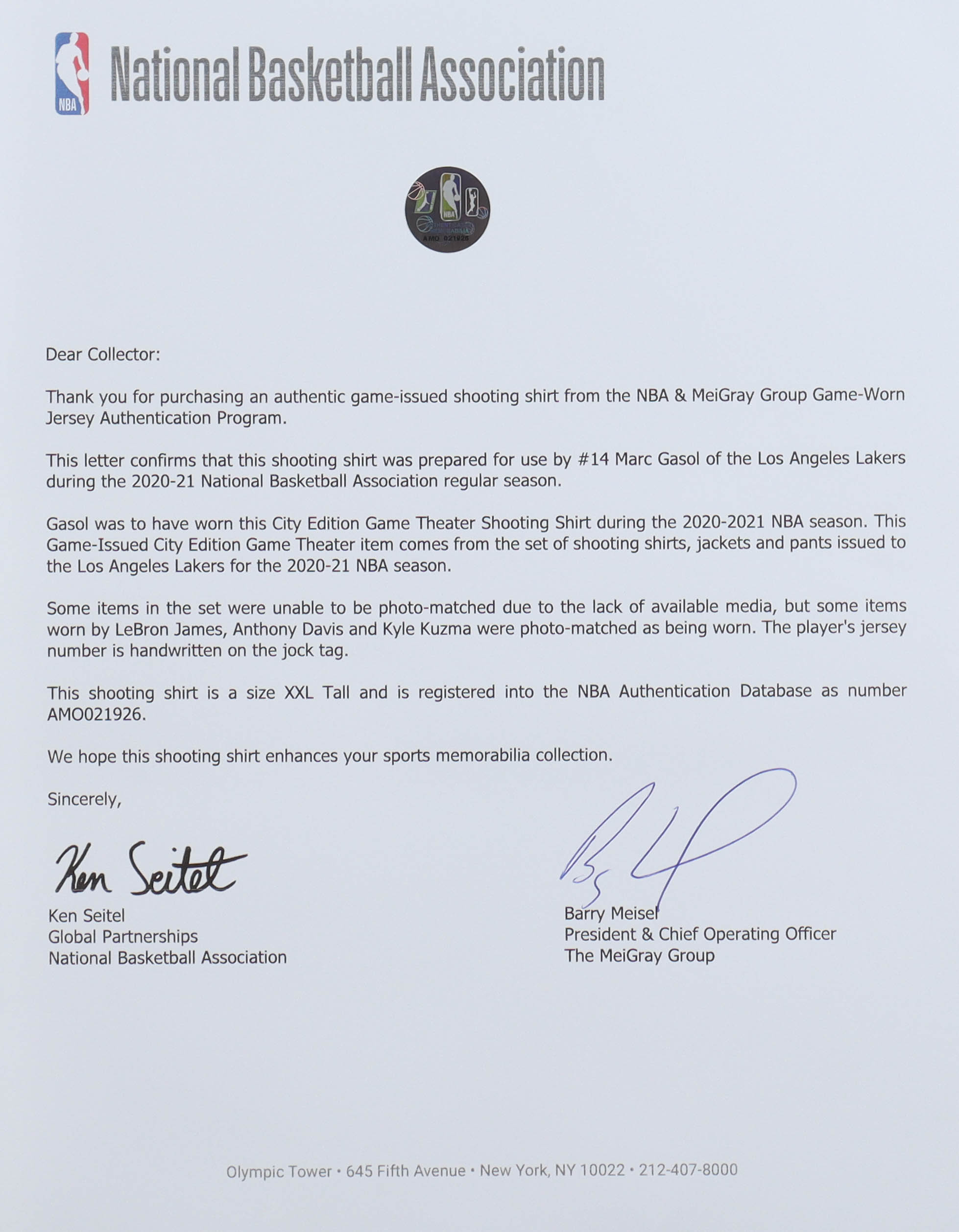 Marc Gasol Player-Issued Lakers City Edition Warm-Up Set (NBA & MeiGray Group)