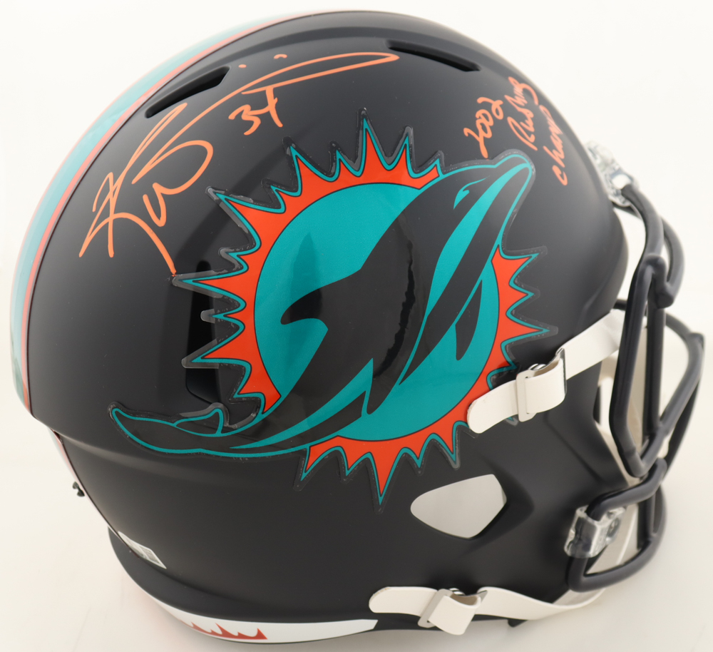 Riddell Miami Dolphins full-size replica Eclipse Alternate Speed helmet. Hand-signed and inscribed by Ricky Williams.