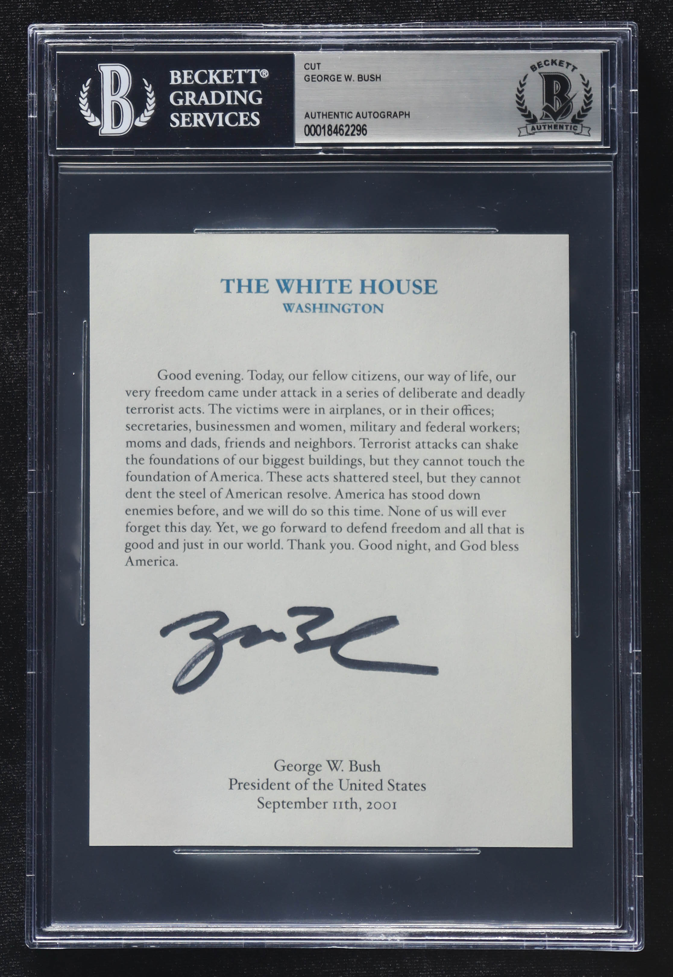 Cut measures 5" x 6" in size. Hand-signed by George W. Bush. Please see photos for details regarding the condition of the cut.