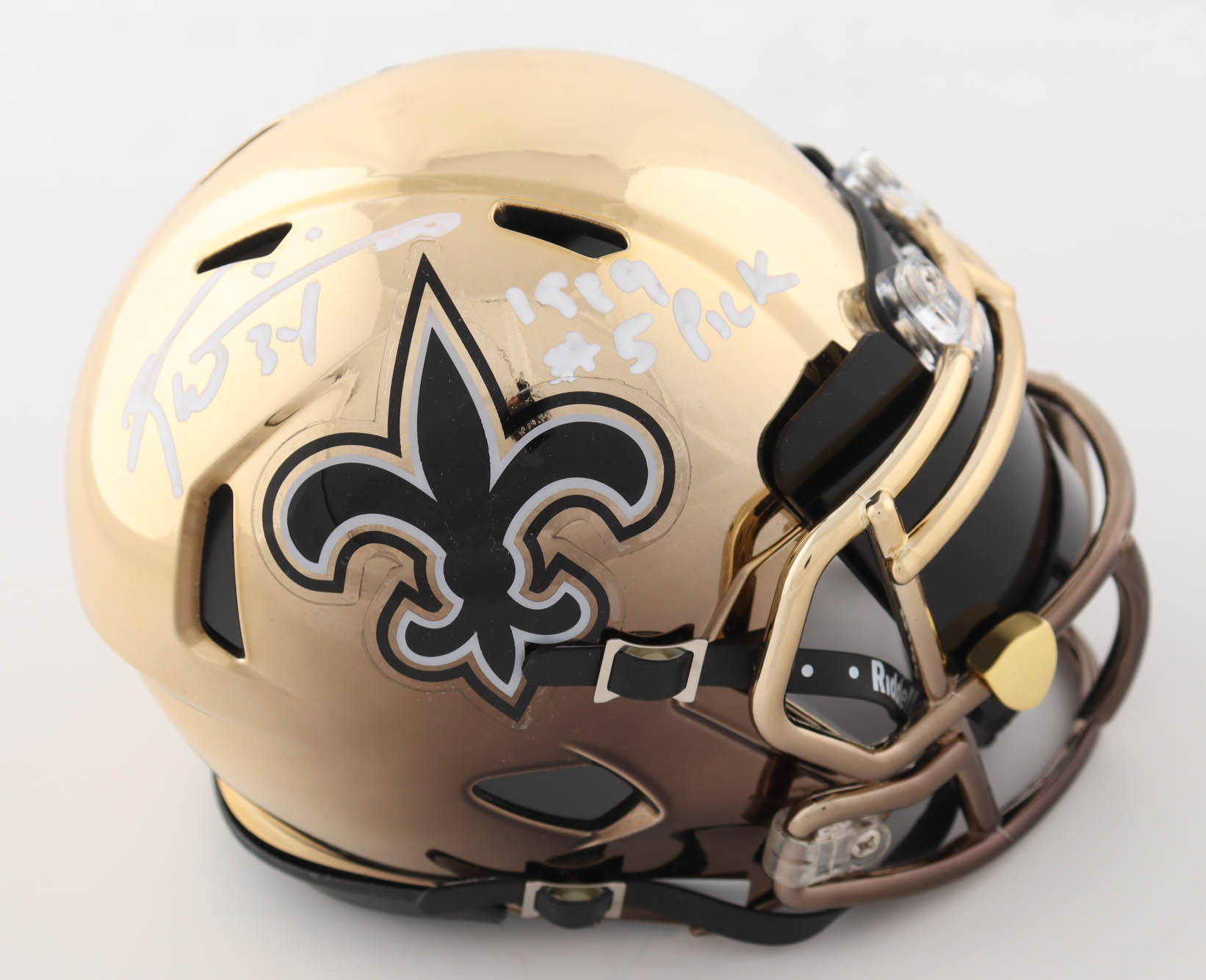 Riddell New Orleans Saints Chrome Alternate Speed Mini Helmet with Visor. Hand-signed and inscribed by Ricky Williams.
