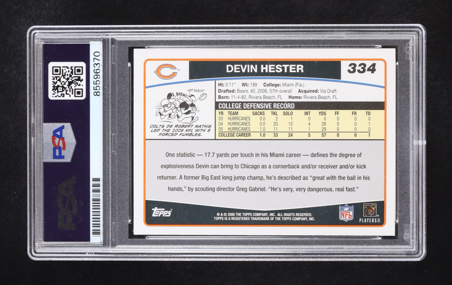 Devin Hester Signed 2006 Topps #334 RC (PSA | Auto Grade PSA 10)