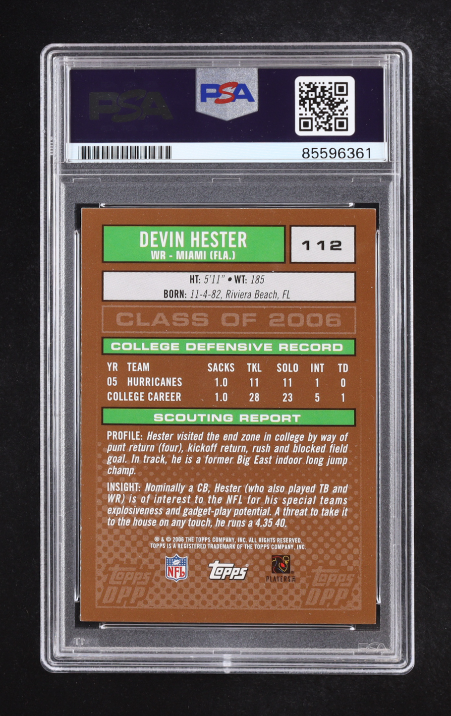 Devin Hester Signed 2006 Topps Draft Picks and Prospects #112 RC (PSA | Auto Grade PSA 10)