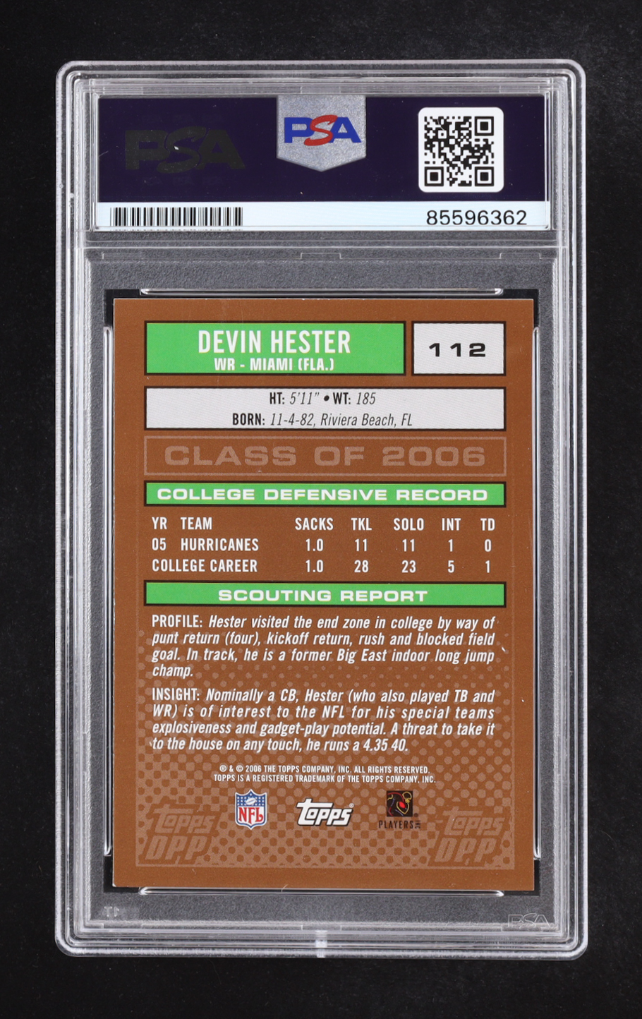 Devin Hester Signed 2006 Topps Draft Picks and Prospects #112 RC (PSA | Auto Grade PSA 10)