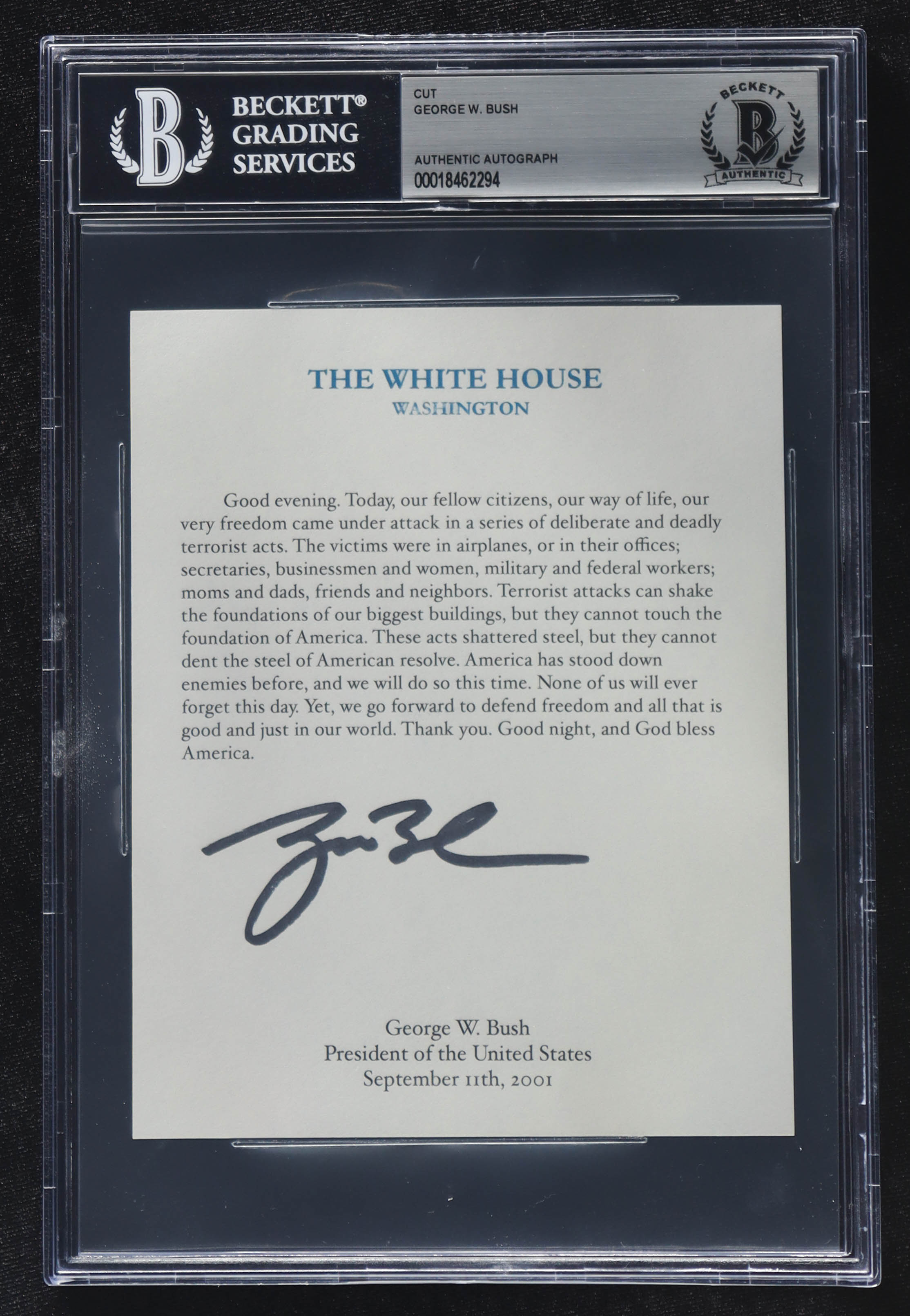 Cut measures 5" x 6" in size. Hand-signed by George W. Bush. Please see photos for details regarding the condition of the cut.