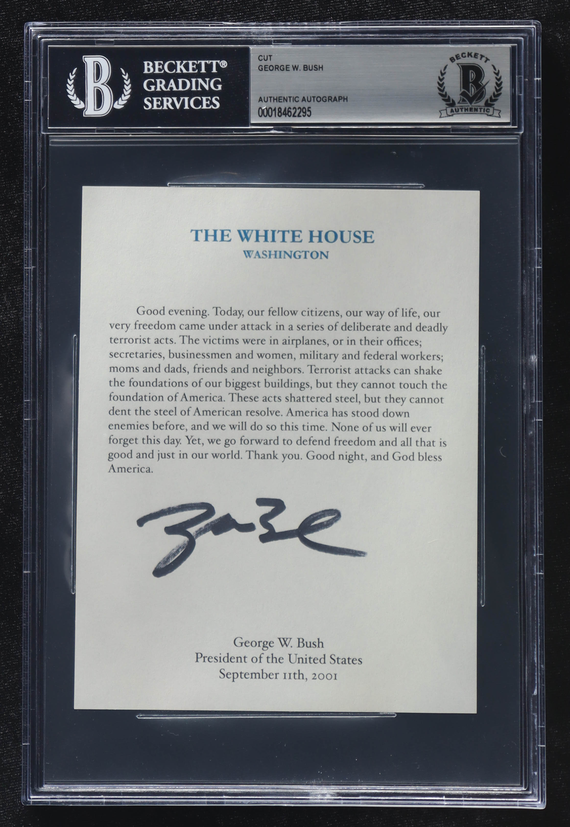 Cut measures 5" x 6" in size. Hand-signed by George W. Bush. Please see photos for details regarding the condition of the cut.