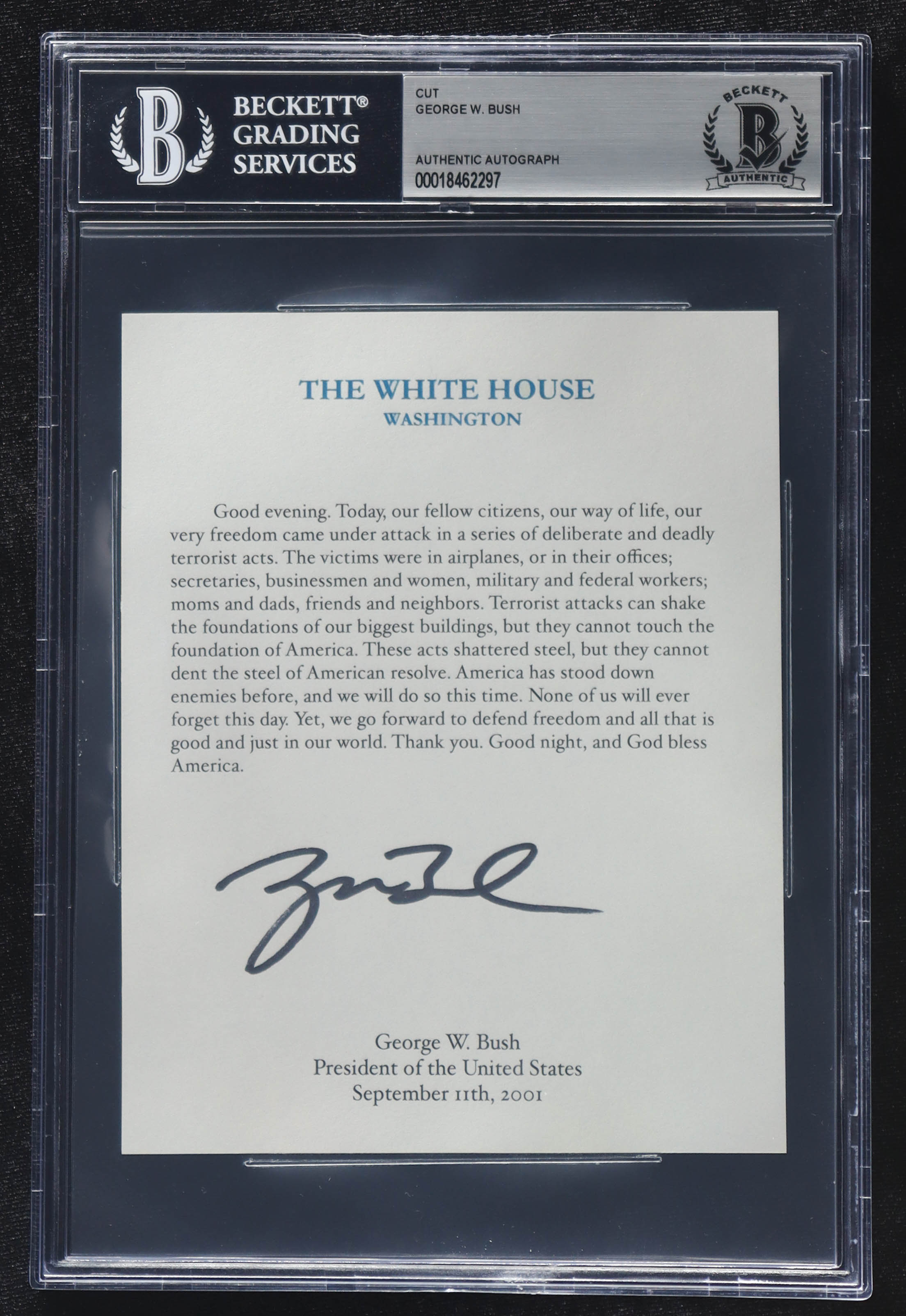 Cut measures 5" x 6" in size. Hand-signed by George W. Bush. Please see photos for details regarding the condition of the cut.
