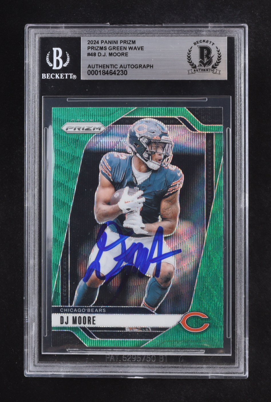 D.J. Moore Signed 2024 Panini Prizm Prizms Green Wave #48 (Beckett | Auto Grade BGS Authentic)