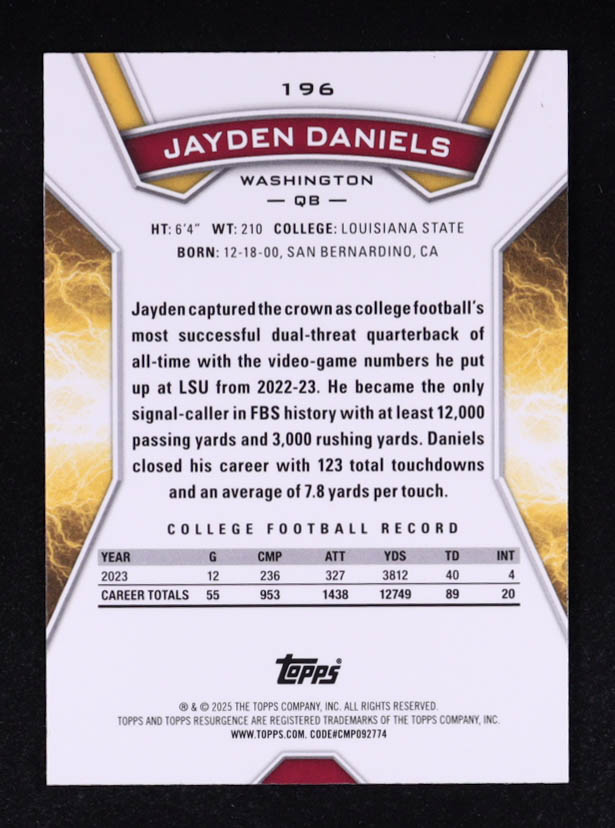 Jayden Daniels 2024 Topps Resurgence Purple Surge #196 #50/75 RC