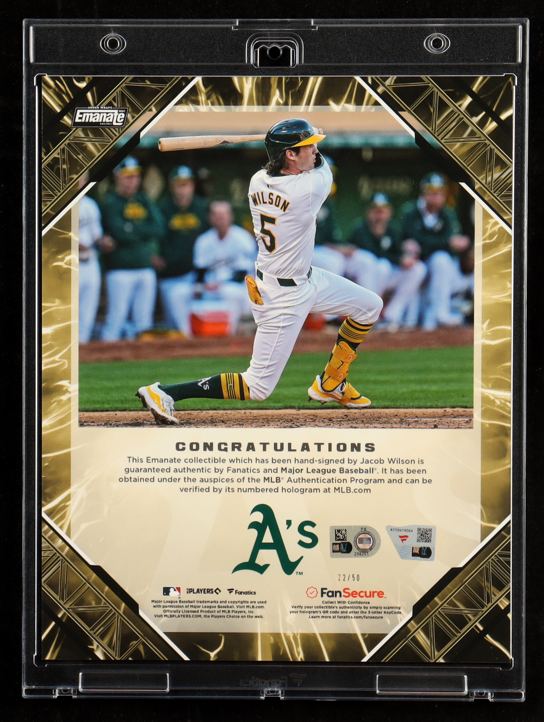 Jacob Wilson Signed 2025 Fanatics Under Wraps Emanate Gold Parallel 8x10 Photo #22/50 (Fanatics & MLB)