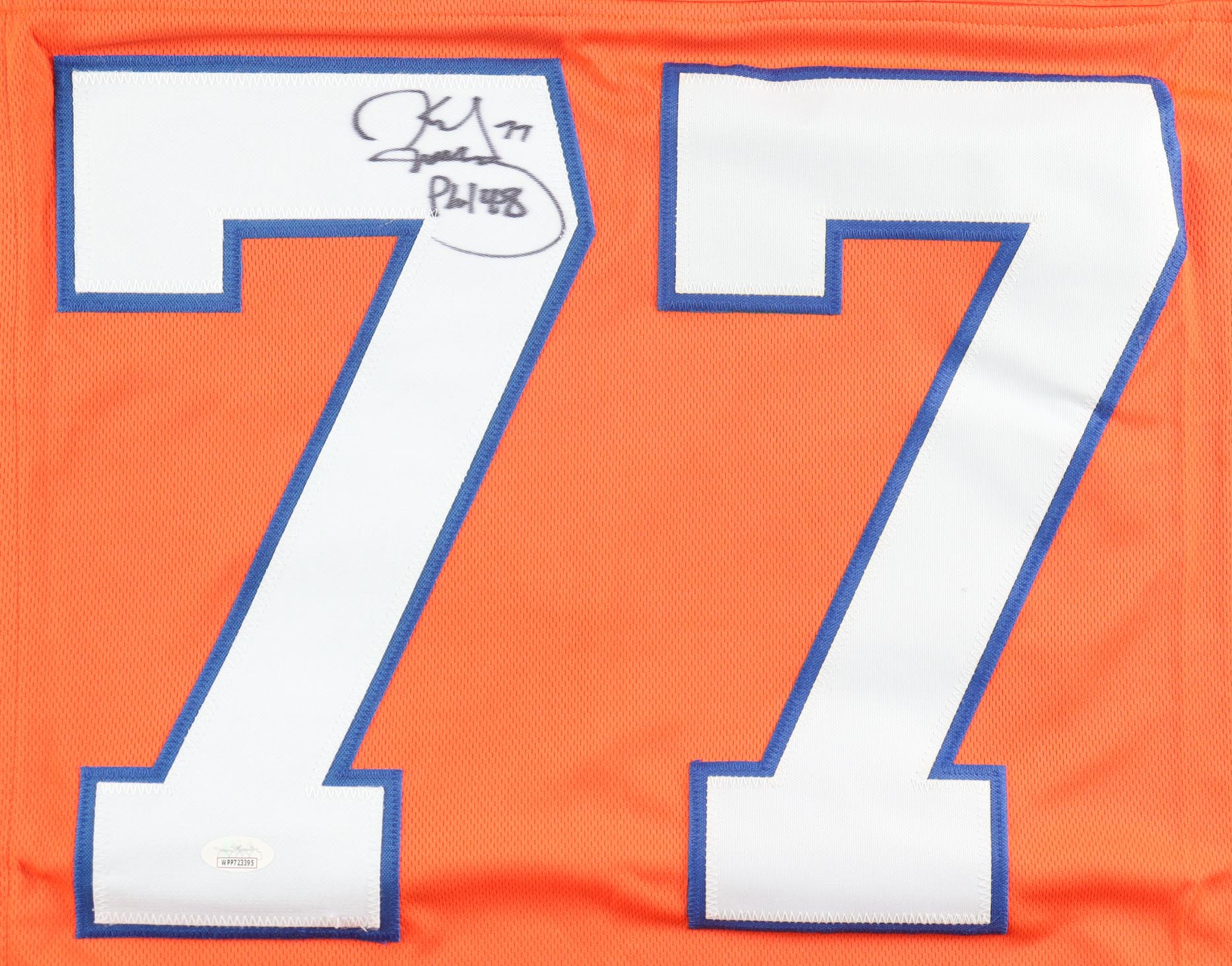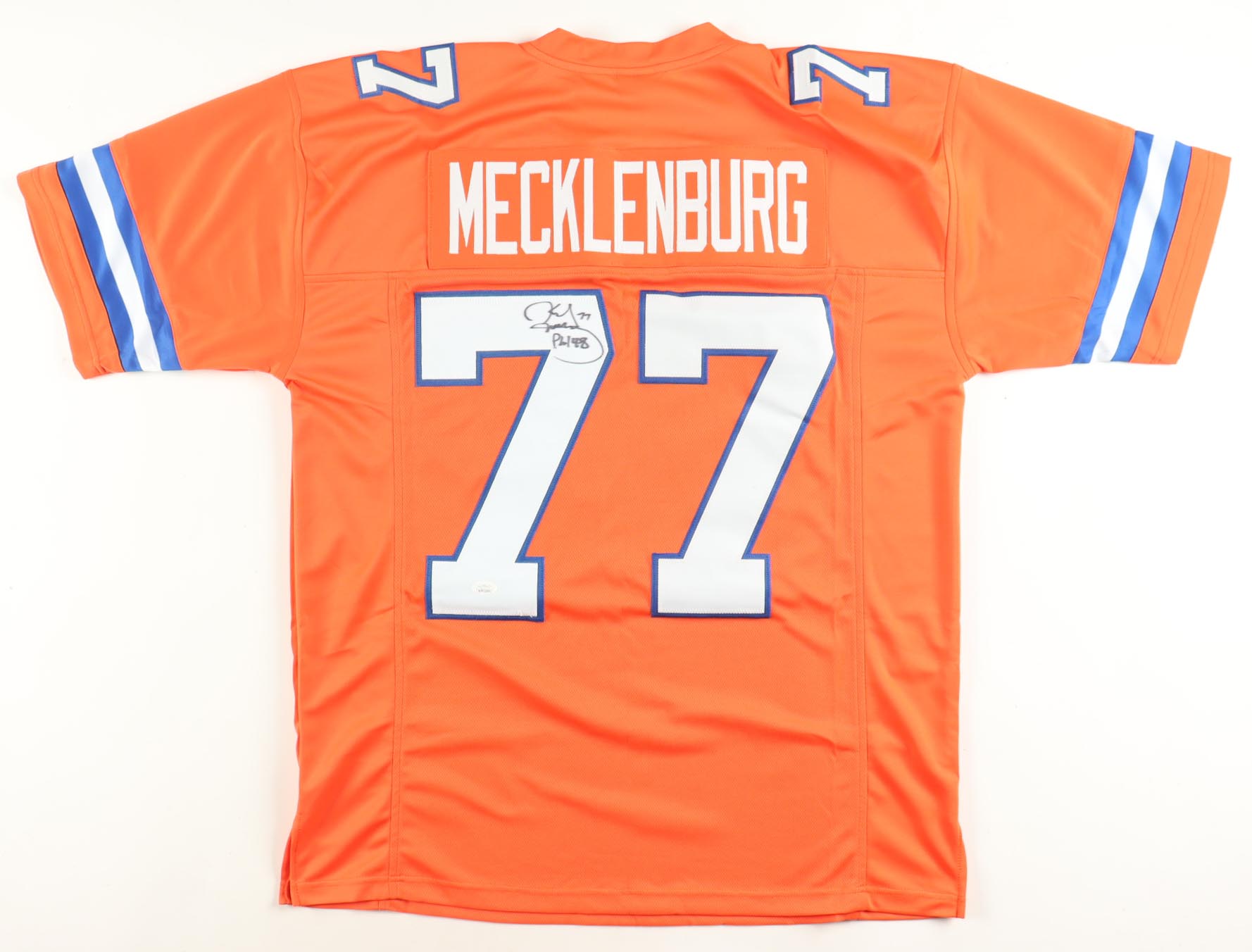 Custom jersey with everything sewn on, size XL. Hand-signed by Karl Mecklenburg.