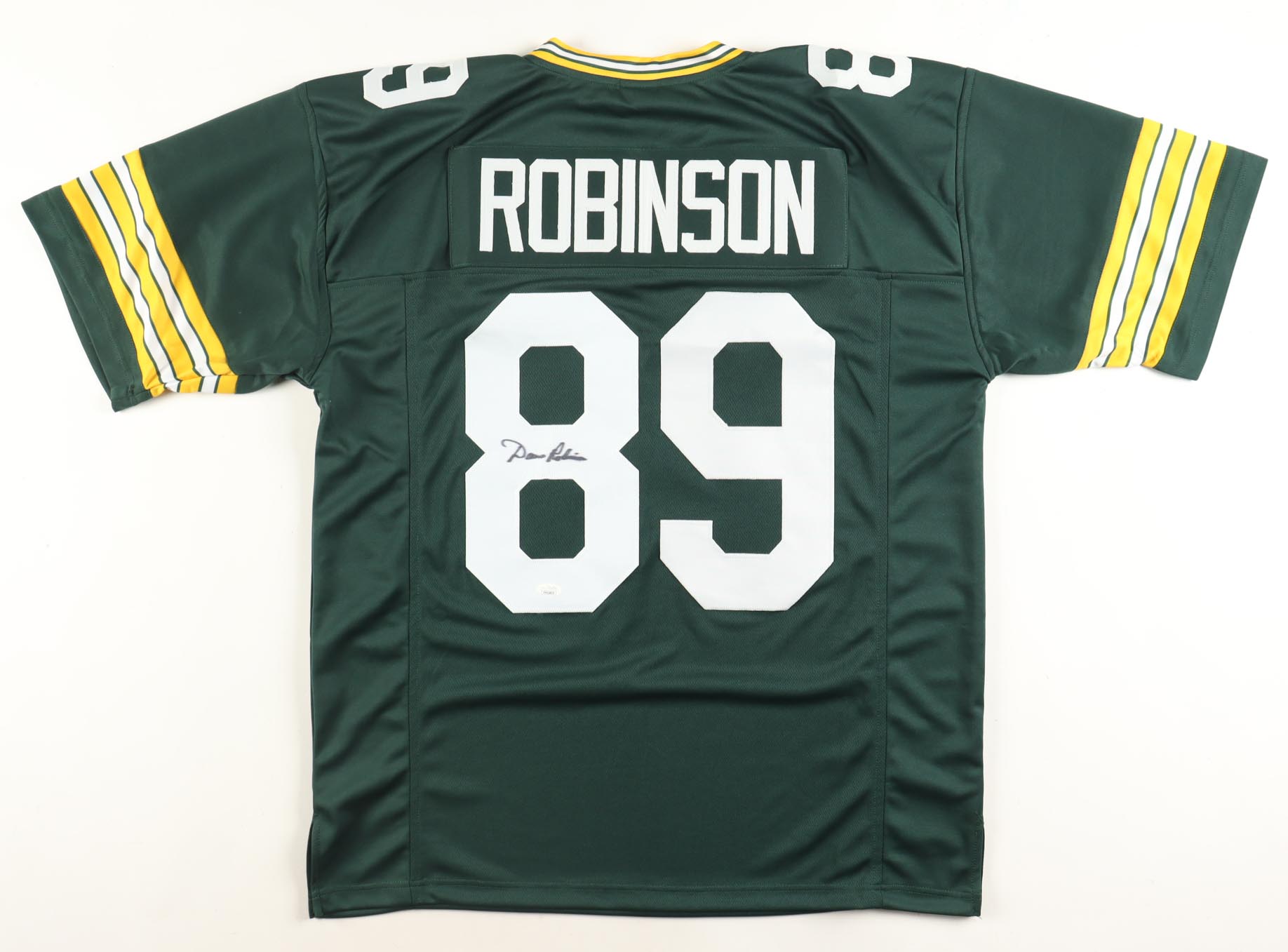 Custom jersey with everything sewn on, size XL. Hand-signed by Dave Robinson (HOF). Please note, the signature has bled.