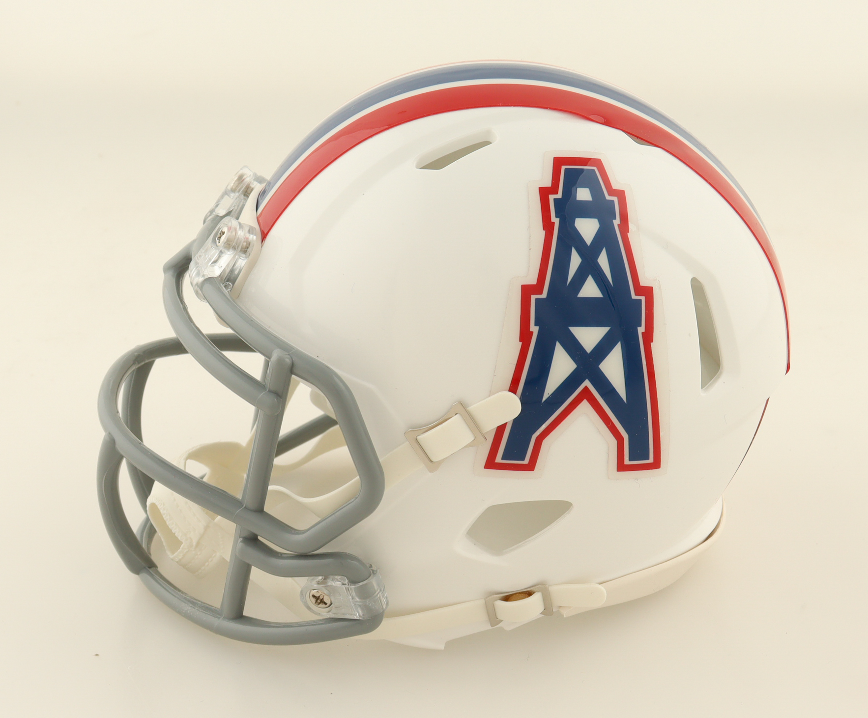 Riddell Houston Oilers Throwback Speed mini helmet. Hand-signed and inscribed by Robert Brazile (HOF).