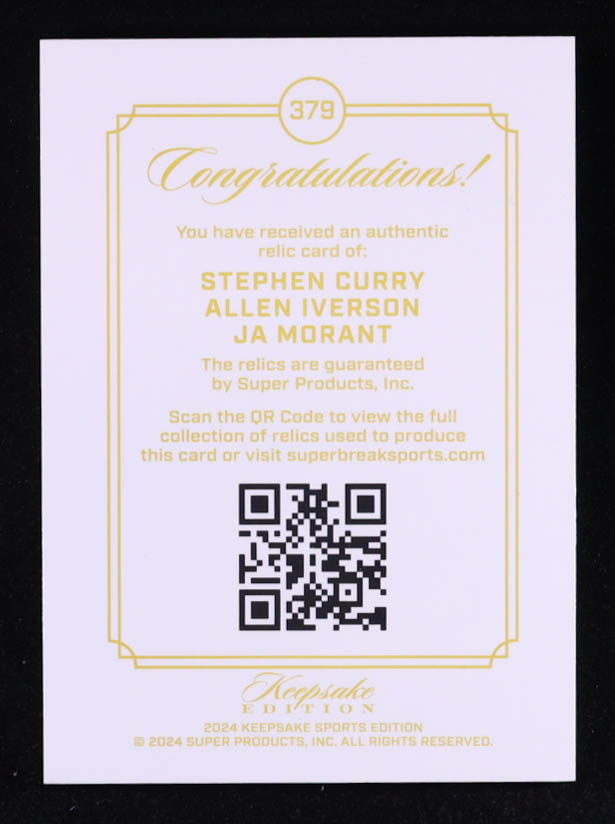 Stephen Curry / Allen Iverson / Ja Morant 2024 Keepsake Edition Gem Relic #379 #2/99