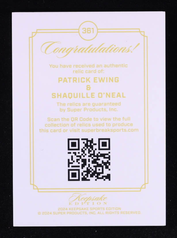 Patrick Ewing / Shaquille O'Neal 2024 Keepsake Edition Gem Relic #361 #72/99
