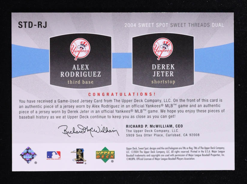 Alex Rodriguez / Derek Jeter 2004 Sweet Spot Sweet Threads Dual #STDRJ #132/150