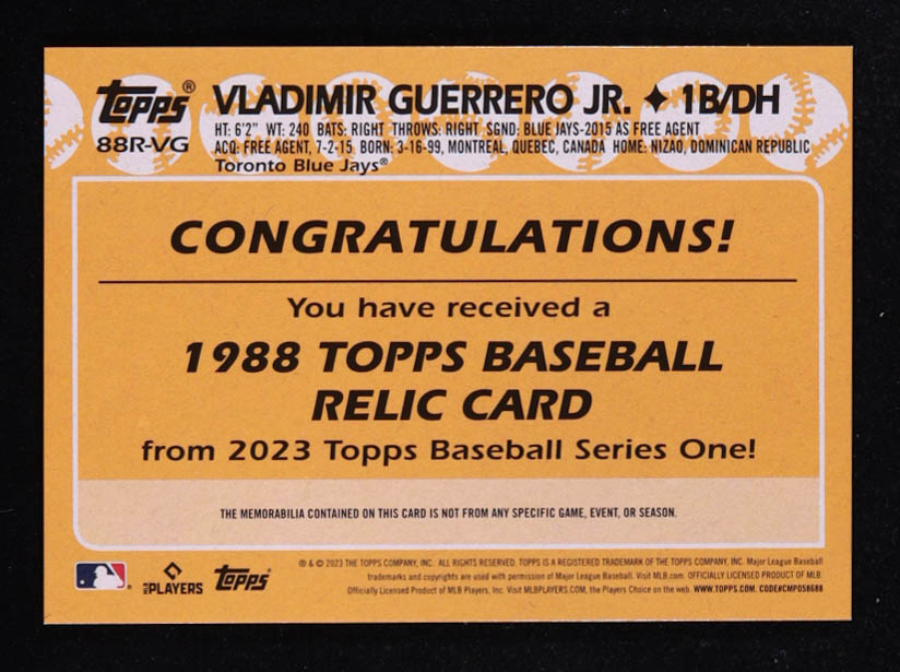Vladimir Guerrero Jr. 2023 Topps '88 Topps Relics #88RVG
