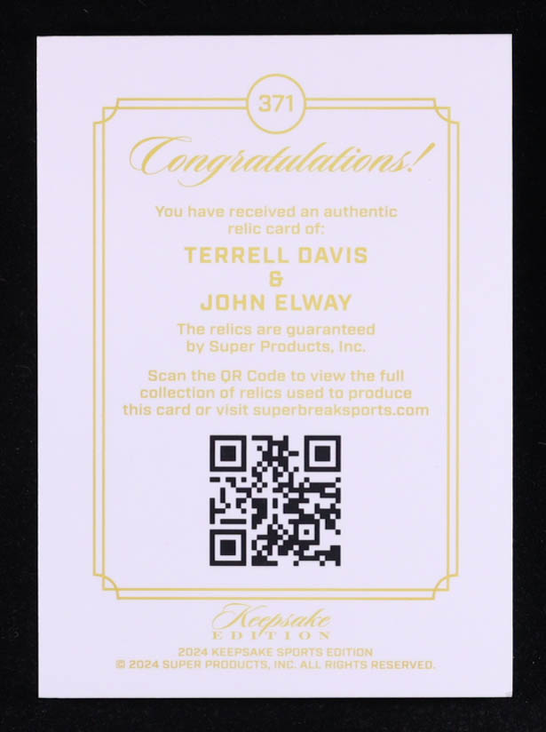 Terrell Davis / John Elway 2024 Keepsake Edition Gem Relic #371 #20/99