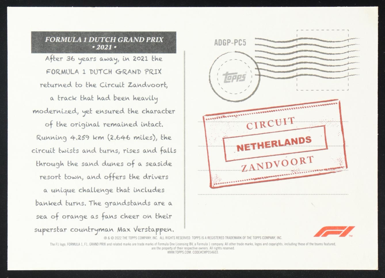 Dutch Grand Prix '21 2022 Topps Formula 1 Art du Grand Prix Box Toppers #ADGPPC5