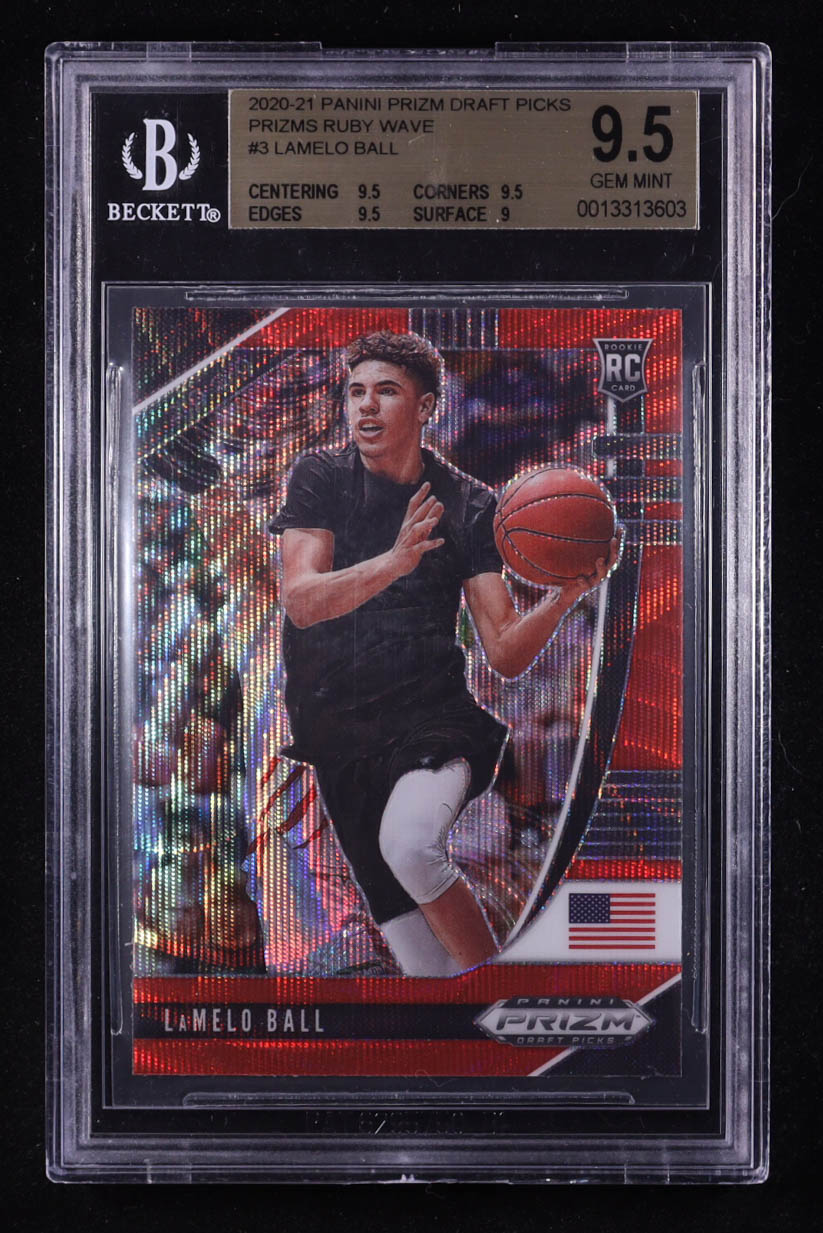 LaMelo Ball 2020-21 Panini Prizm Draft Picks Prizms Ruby Wave #3 RC (BGS 9.5)