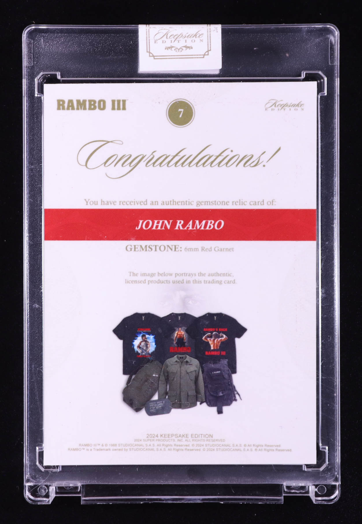 John Rambo 2024 Keepsake Edition Gemstone Relic Authentic Rambo III #7 #48/99
