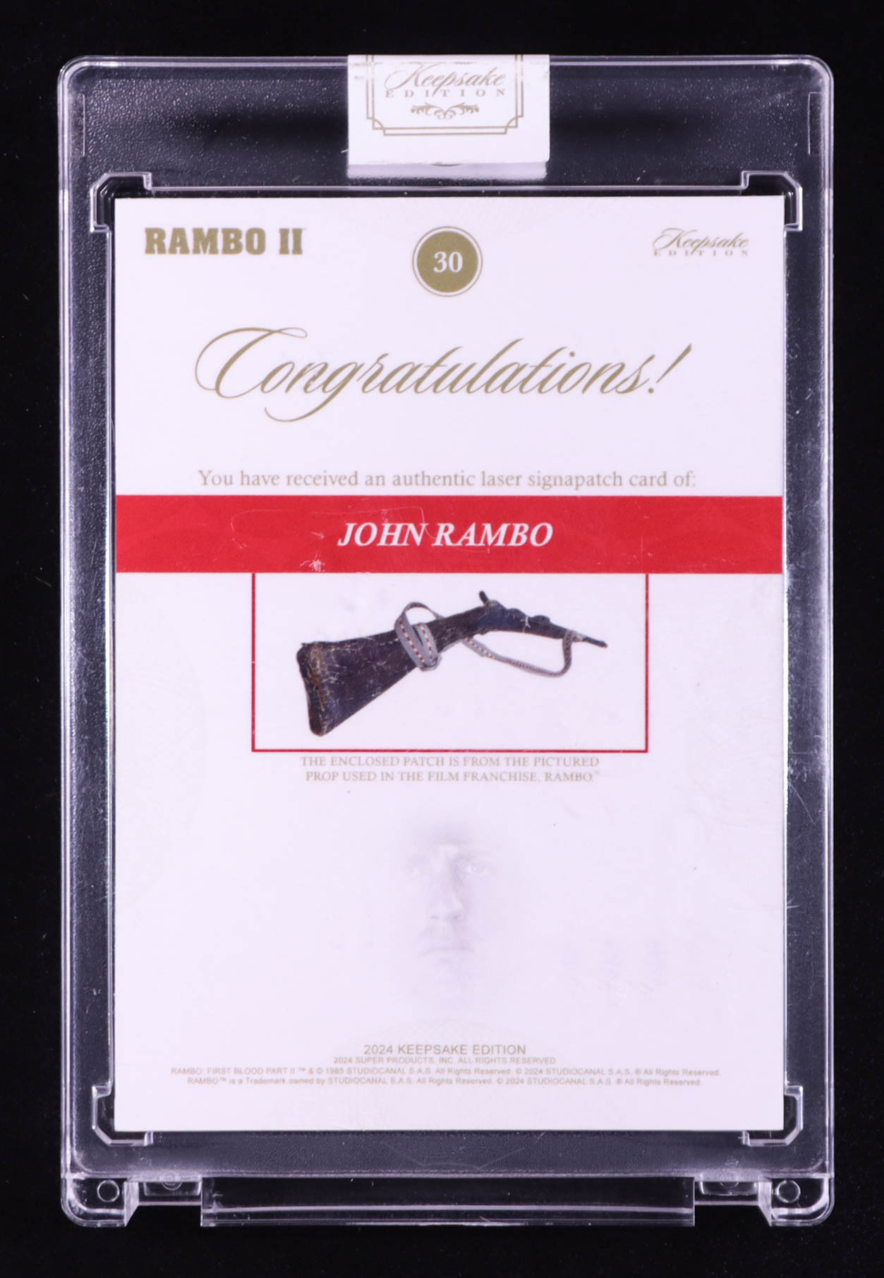 John Rambo 2024 Keepsake Edition Laser Signapatch Authentic Rambo II #30 #03/99