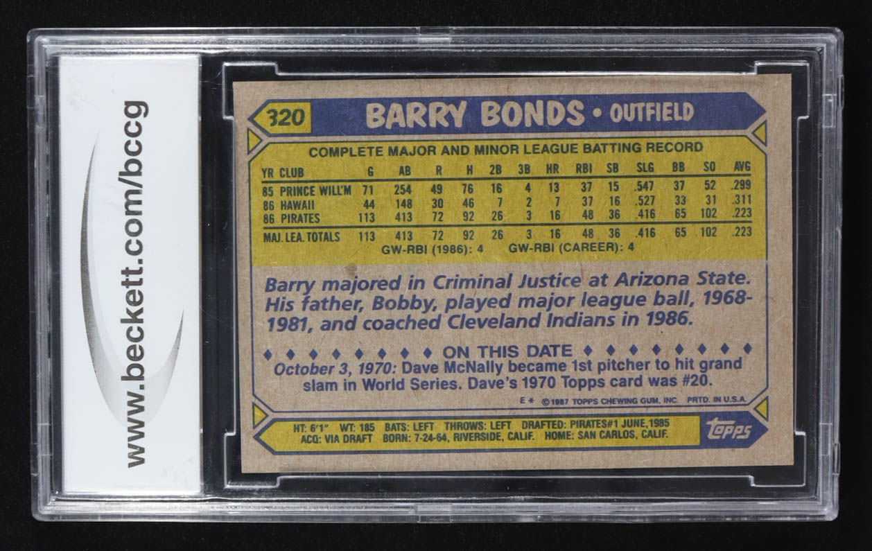 Barry Bonds 1987 Topps #320 RC (BCCG 10)