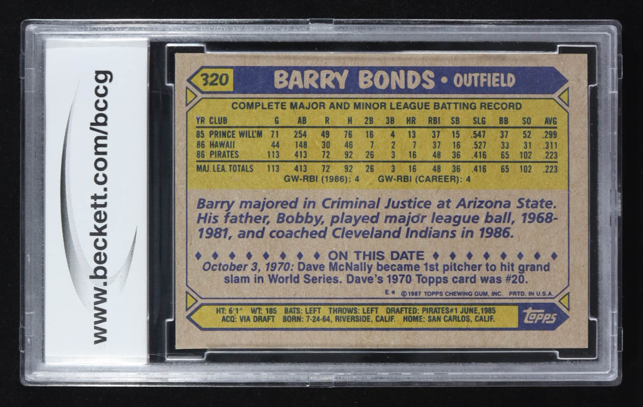 Barry Bonds 1987 Topps #320 RC (BCCG 10)