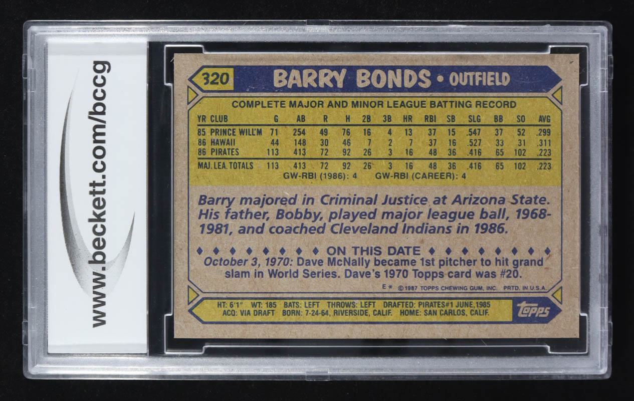 Barry Bonds 1987 Topps #320 RC (BCCG 10)