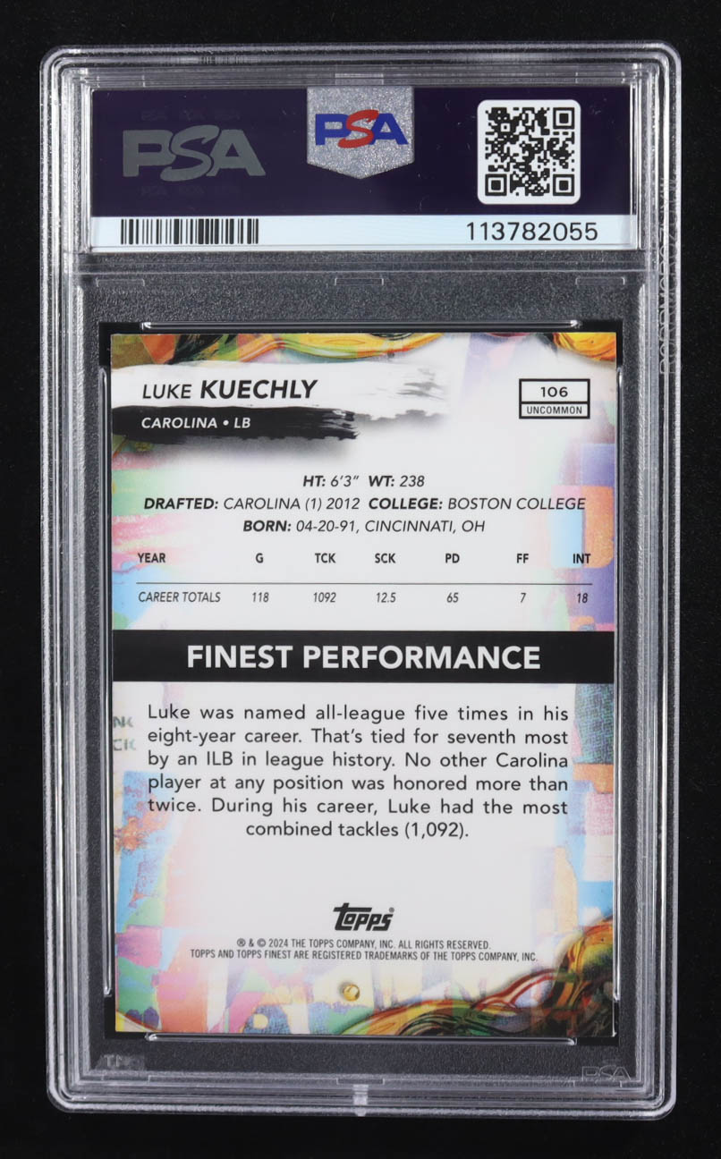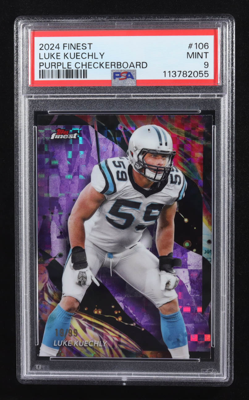 Luke Kuechly 2024 Finest Purple Checkerboard Refractors #106 #19/99 RC (PSA 9)