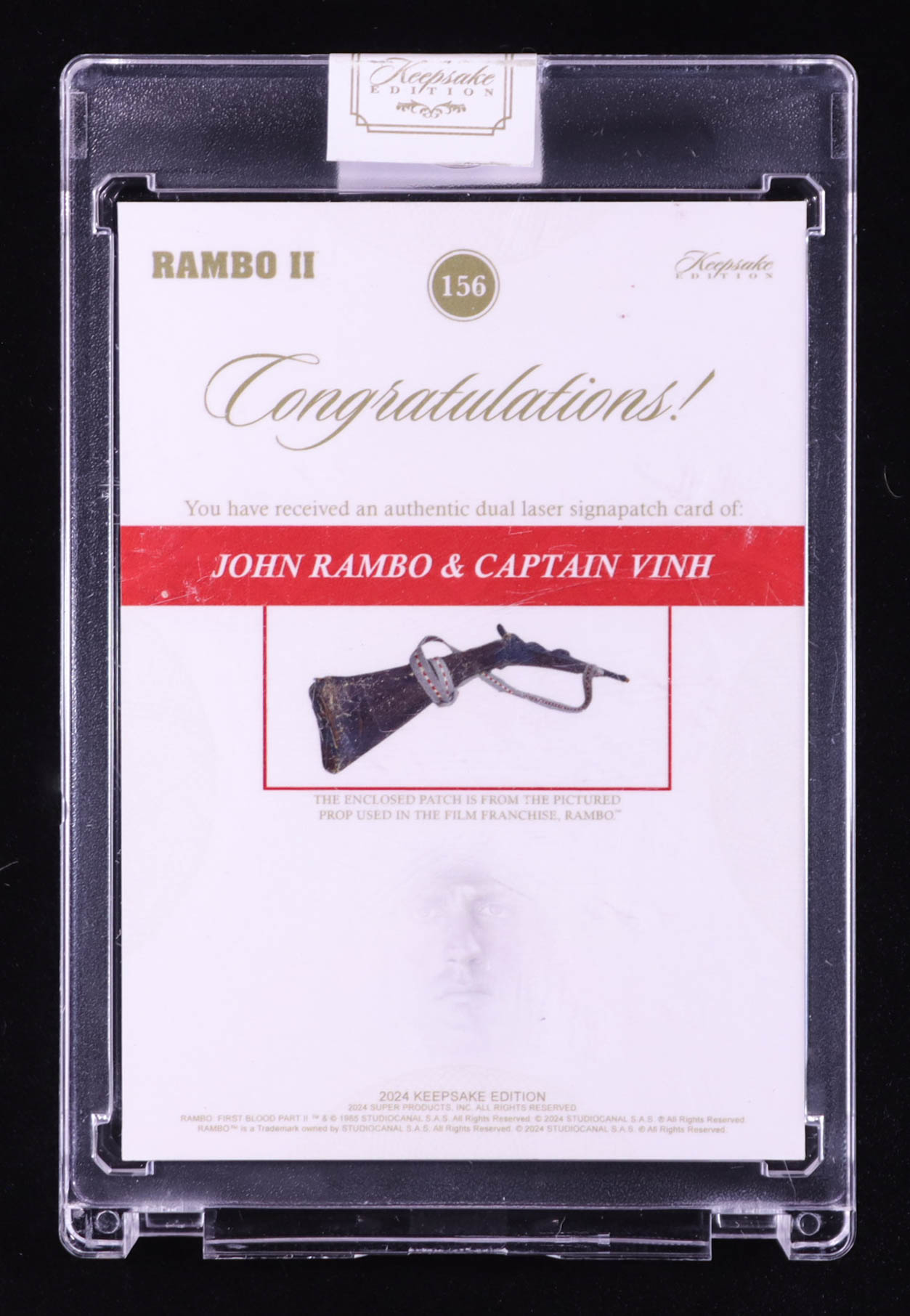 John Rambo/Captain Vinh 2024 Keepsake Edition Dual Laser Signapatch Authentic First Blood Part II #156 #18/50